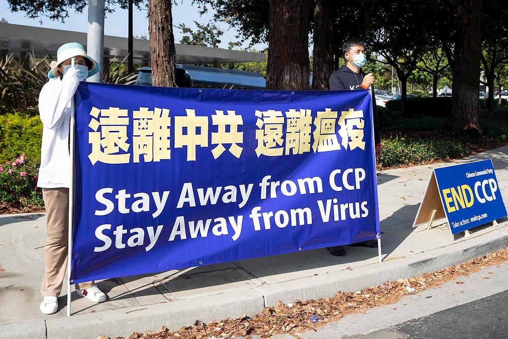 Praktikanti iz okolnih područja San Josea, Milpitasa i Fremonta su postavili transparente s natpisima: "Dezintegrirajte Kinesku komunističku partiju, zaustavite progon" i "Klonite se KPK, klonite se virusa" uz duž veoma prometne ceste u Sanu Joseu.