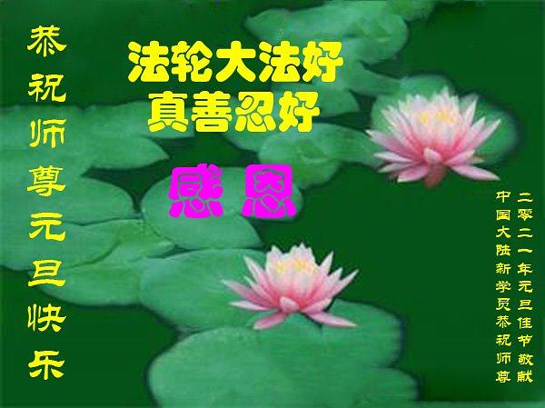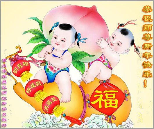 Ispod je kolekcija čestitki primljenih od novih praktikanta u Кini. One dolaze iz provincija Jilin, Sečuan, Hebei, Jiangki, Heilongjiang, Jiangsu, Liaoning i Iunnan, kao i iz Chongkinga, Pekinga i Šangaja.