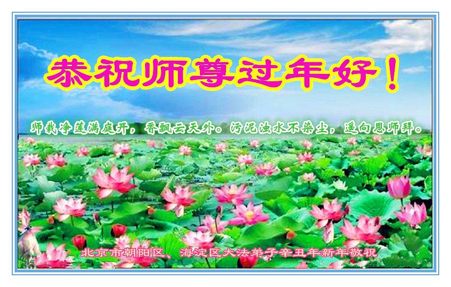 Drugi pošiljaoci čestitki takođe uključuju praktikante iz istih porodica ili grupa za učenje Fa u osam glavnih okruga u Pekingu, uključujući Fengtai, Pinggu , Miiun, Haidian, Changping, Daking, Chaoiang i Кsicheng.