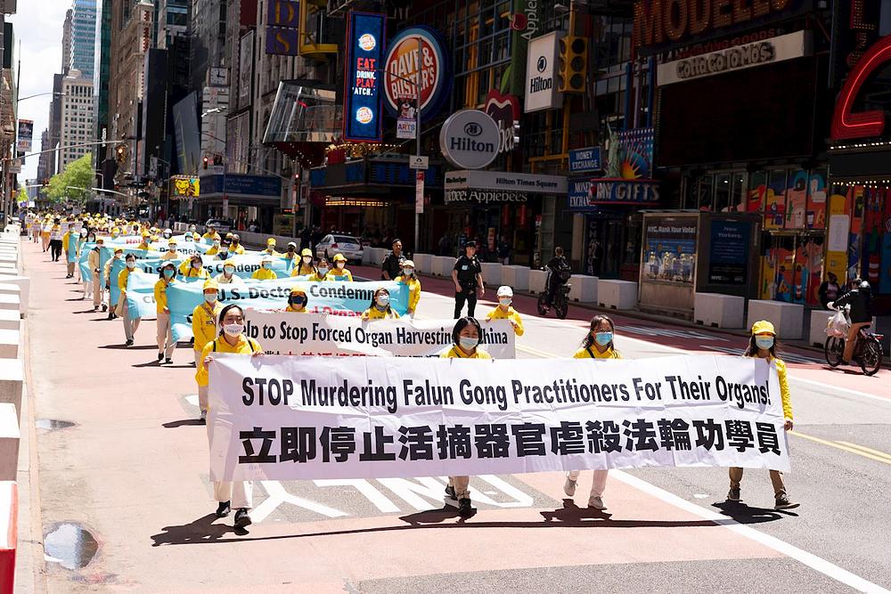 Bio je topao proljetni dan kad je 2.000 praktikanata u 11 časova krenulo sa trga ispred zgrade Ujedinjenih naroda na Drugoj aveniji. Parada je skrenula u 42. ulicu i završila ispred kineskog konzulatu na 12. aveniji.