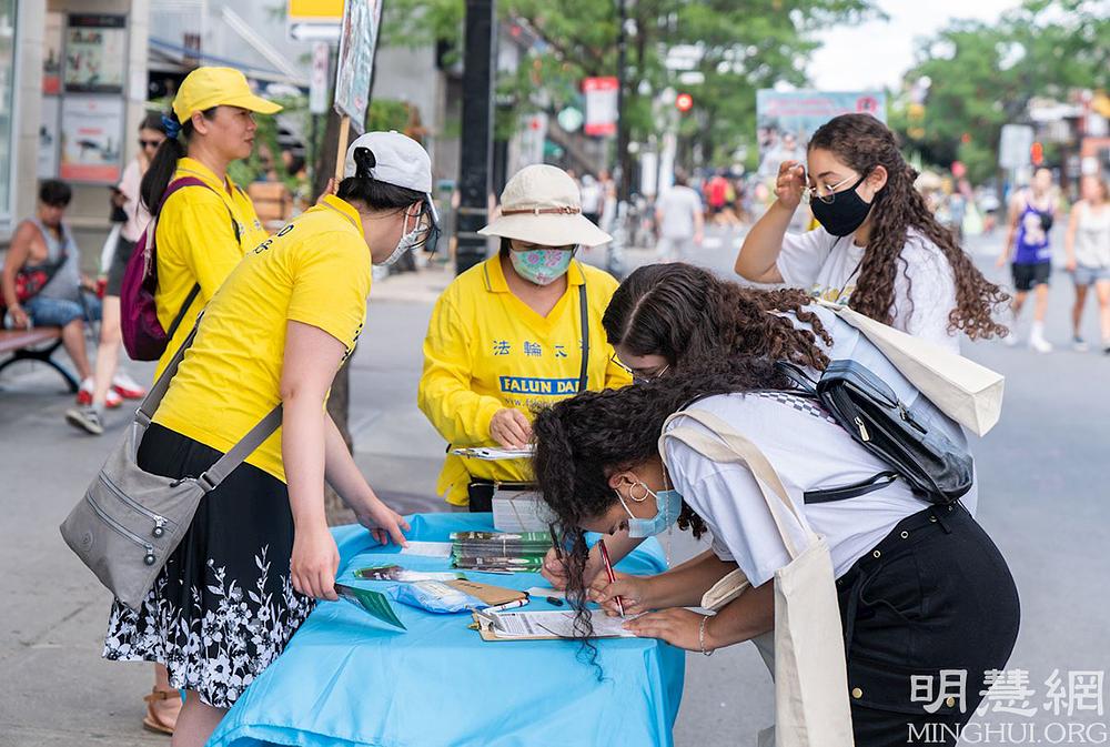 Isabelle iz Montreala je sa zadovoljstvom potpisala peticiju. “Vidite, nisam ja jedina osoba koja je potpisala peticiju. Što veći broj ljudi dobije ovu informaciju i shvati da postoji problem, imaćemo više snage da to riješimo”, rekla je. Ona vjeruje da je objašnjavanje istine koje vrše praktikanti važno i da „mi kao građani imamo odgovornost da djelujemo“.