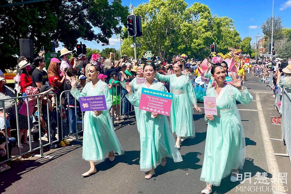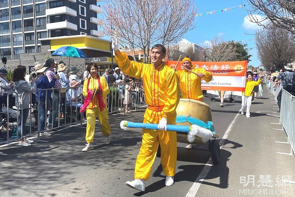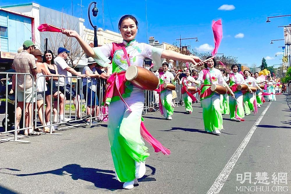 Jedan je najavljivač kazao: „Gledajte! Dolazi sjajna i šarena Falun Dafa povorka. Oni su dio karnevala cvijeća u Toowoombi već 22 godine, još od 1999. godine.”