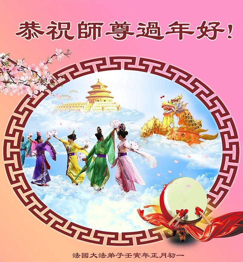 Kineska Nova godina počela je 1. veljače i praktikanti iz različitih zemalja su poslali svoje iskrene pozdrave na Minghui.org kako bi g. Li Hongzhiju, osnivaču Falun Dafa, poželjeli sretnu kinesku Novu godinu! Sretni su što imaju ovu neviđenu priliku za kultiviranje i istinski su zahvalni Učitelju na suosjećajnoj brizi te su odlučni dobro kročiti predstojećim putom kultivacije.