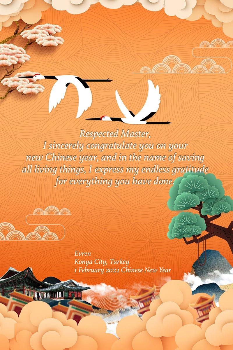 „Dorim venerabilului Maestru un An Nou Chinezesc fericit!” (Želimo štovanom Učitelju sretnu Kinesku Novu godinu!) napisali su moldavski praktikanti iz Rumunjske.