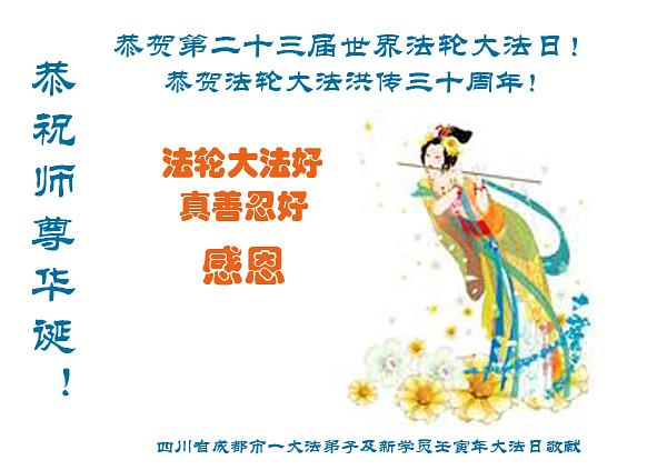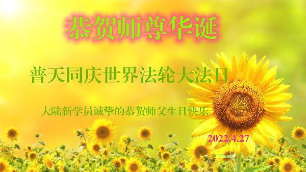 S obzirom da se 13. svibnja ove godine obilježava 30. godišnjica predstavljanja Falun Dafa javnosti, novi praktikanti, različitih dobnih skupina i iz raznih provincija u Kini, šalju svoje pozdrave kako bi Učitelju Li Hongzhiju, osnivaču Falun Dafa, čestitali rođendan.