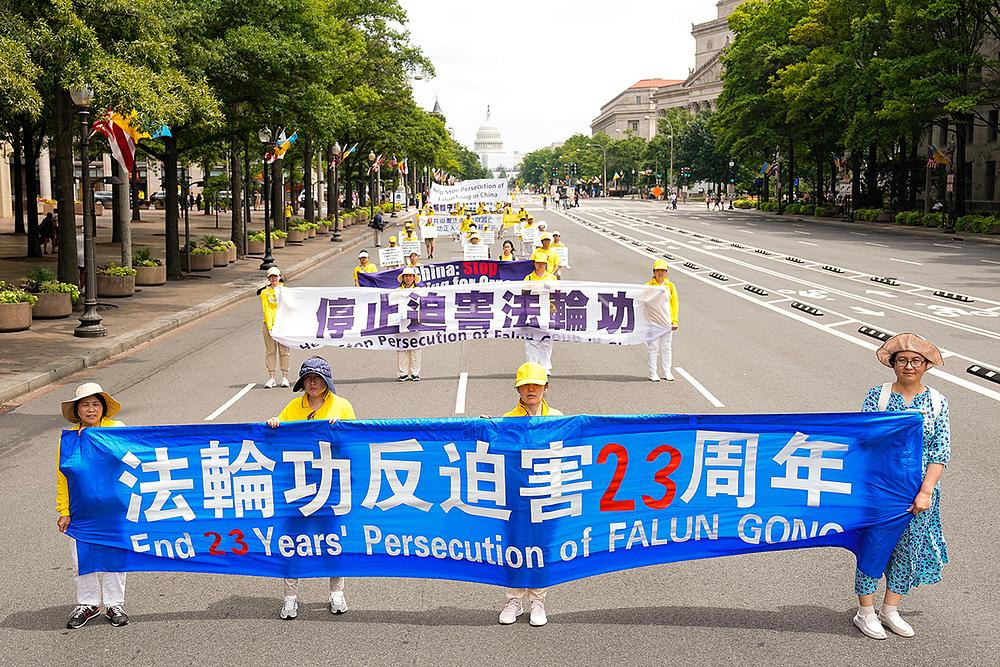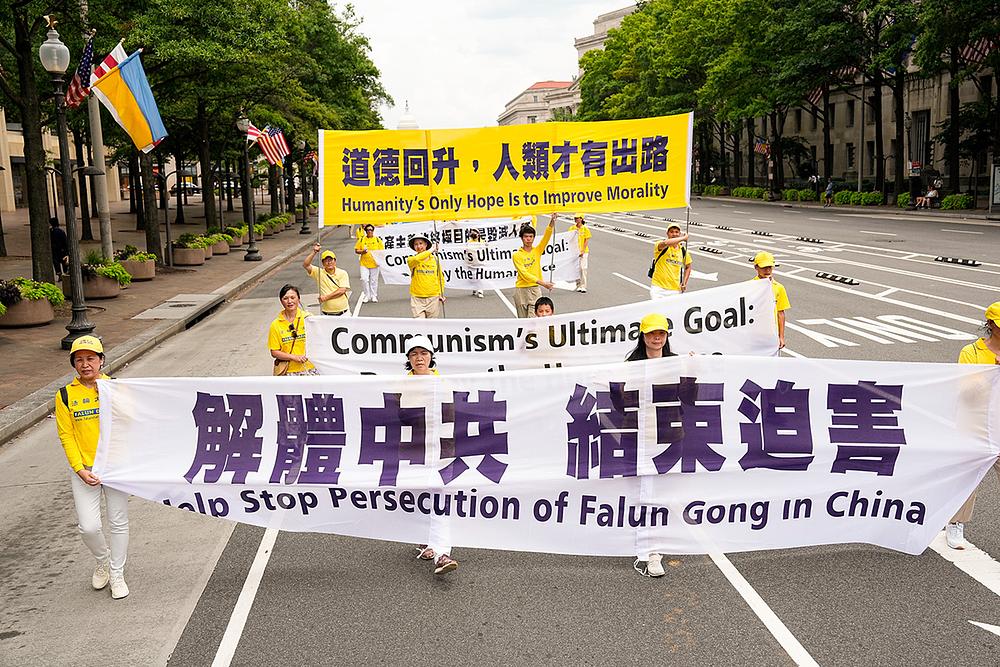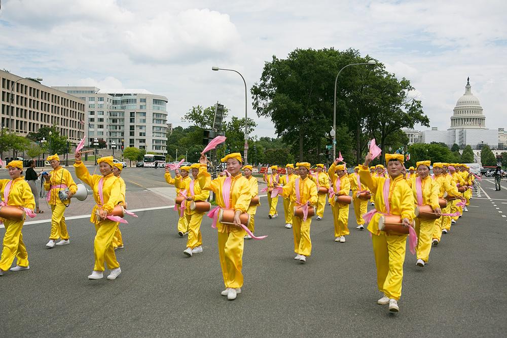 Približno 2.000 Falun Dafa praktikanata je, popodne 21. jula, održalo paradu u Washingtonu D.C. u znak protesta protiv dvadeset trogodišnjeg progona koji vrši Komunistička partija Kine (KPK). Praktikanti su pozvali na trenutni prekid zločina KPK.