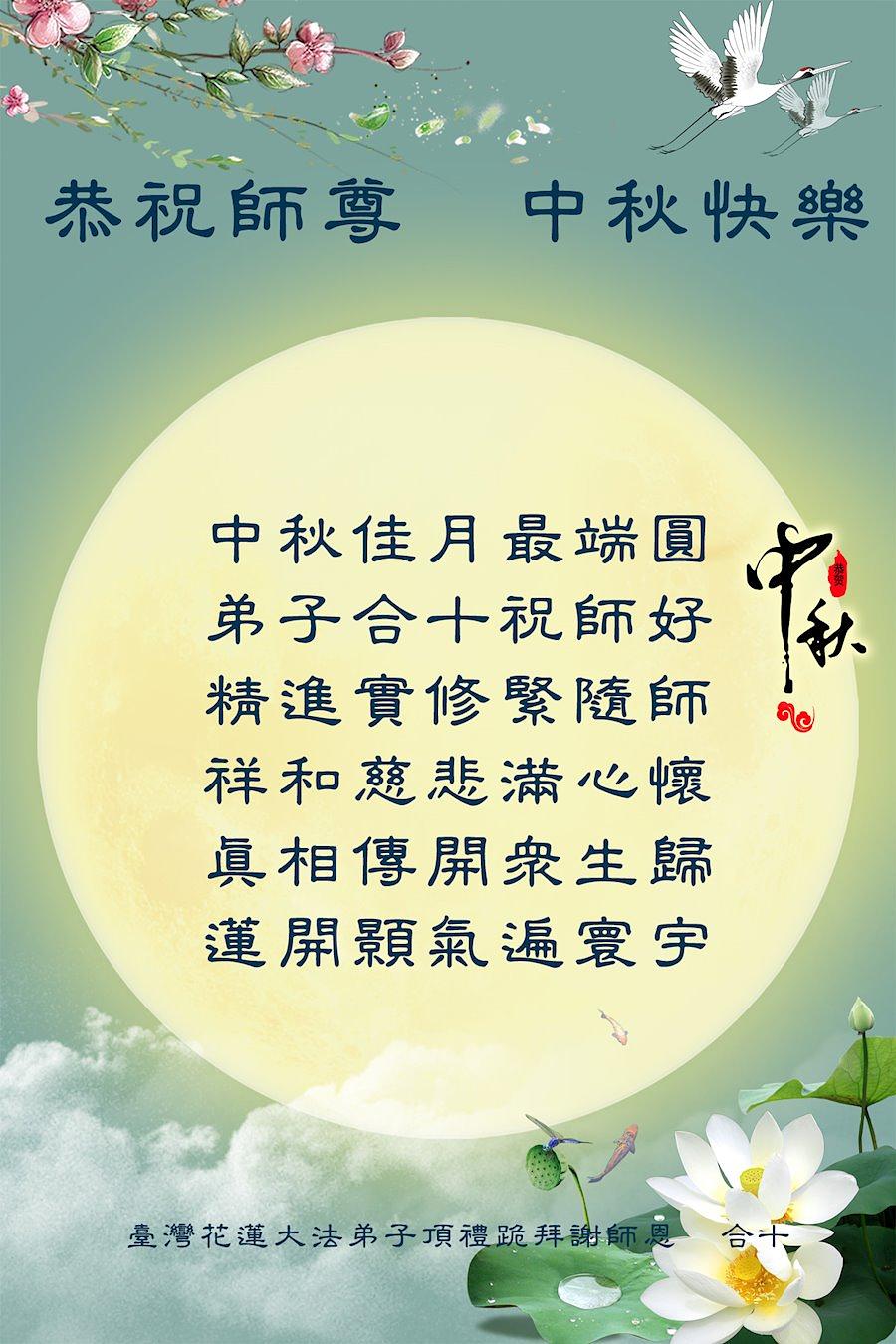 Dafa praktikanti sa Tajvana žele Učitelju Liju sretan Praznika Sredine Jeseni!