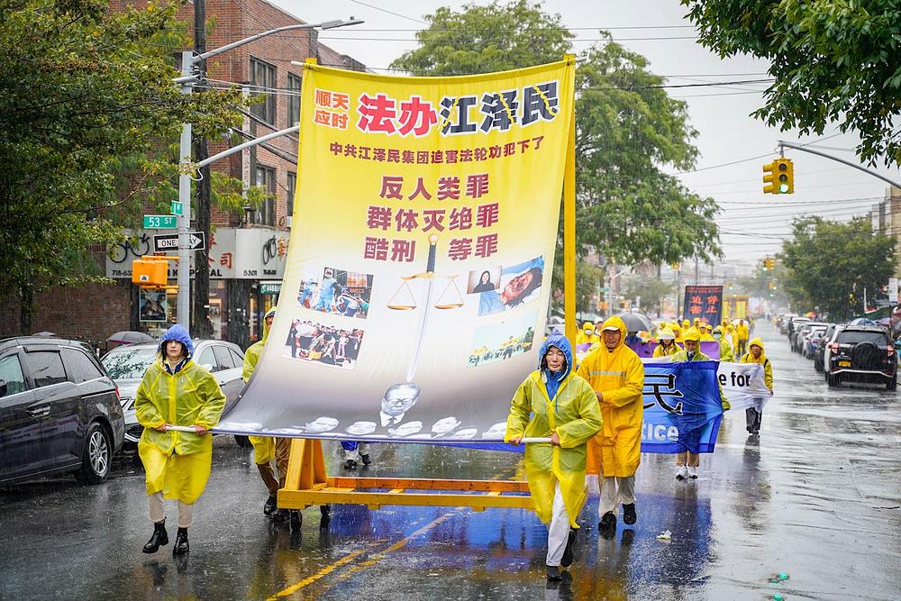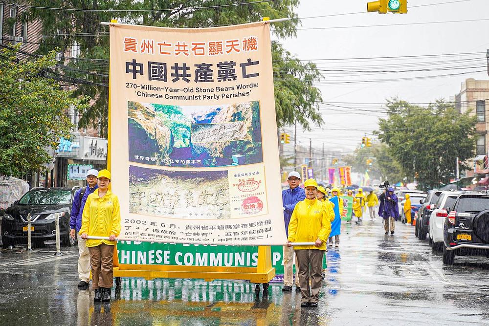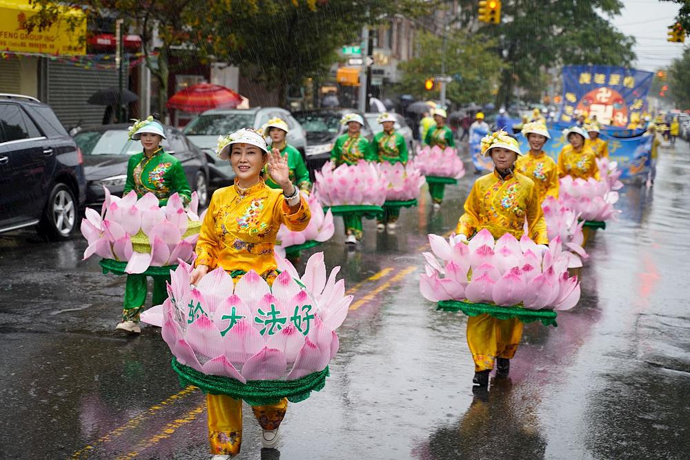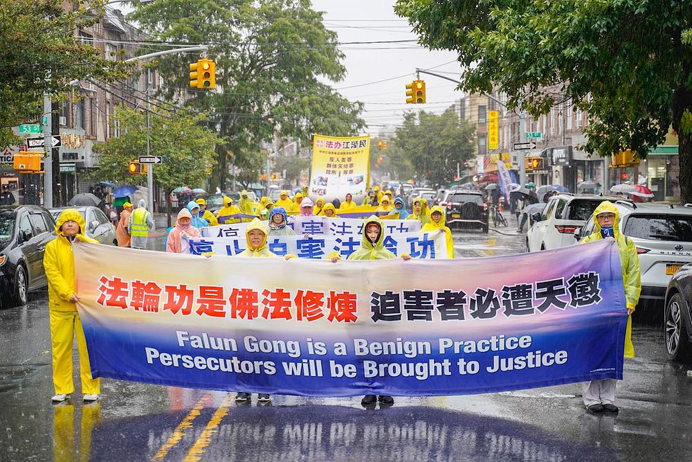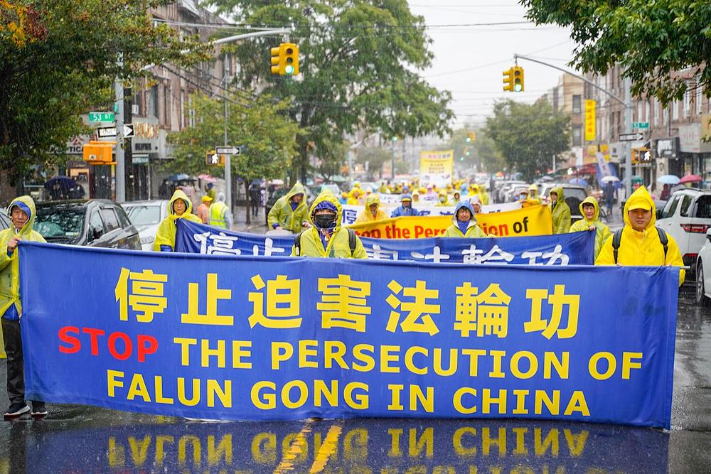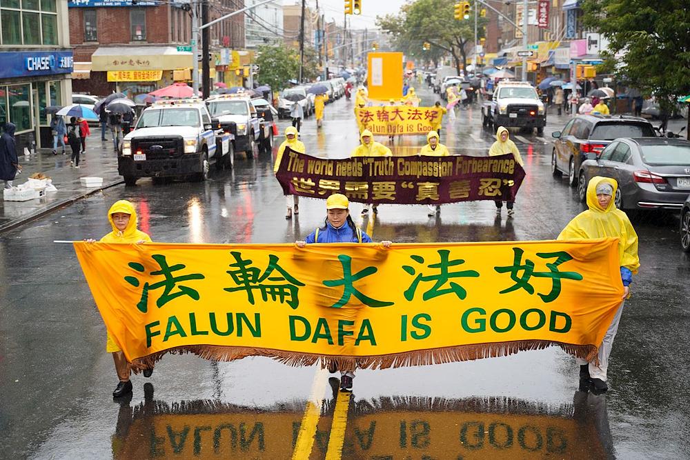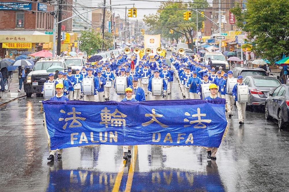 Zastave i transparenti su, 2. oktobra 2022. godine, ispunili 8. aveniju u Bruooklynu u New Yorku, a okolne zgrade su odjekivale od zvukova gongova i bubnjeva. Više je od 1.000 Falun Dafa praktikanata održalo veliku paradu po kiši kako bi ljude upoznali sa dvadeset trogodišnjim progonom njihove miroljubive kultivacijske prakse u Kini. Parada je održana i kako bi se odalo priznanje za 400 miliona Kineza koji su napustili Komunističku partiju Kine (KPK) i njene pridružene organizacije. Mnogi prolaznici su se zaustavljali da gledaju paradu i dobiju informacije o brutalnom progonu.