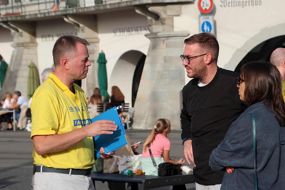 „U današnjem svijetu toliko je mnogo ljudi proganjano zbog svojih ideja, mišljenja i uvjerenja. Ovo se ne može tolerisati”, rekao je Michael Mosiman kada je navratio na događaj održan u Limmatquai, Cirih 29. oktobra 2022. godine. On je rekao da se nada da će njegov potpis pomoći da se zaustavi progon Falun Dafa praktikanata u Kini od strane Komunističke partije Kine (KPK). Također je zamolio svog prijatelja da potpiše peticiju kojom se poziva da se prekinu zvjerstva KPK.