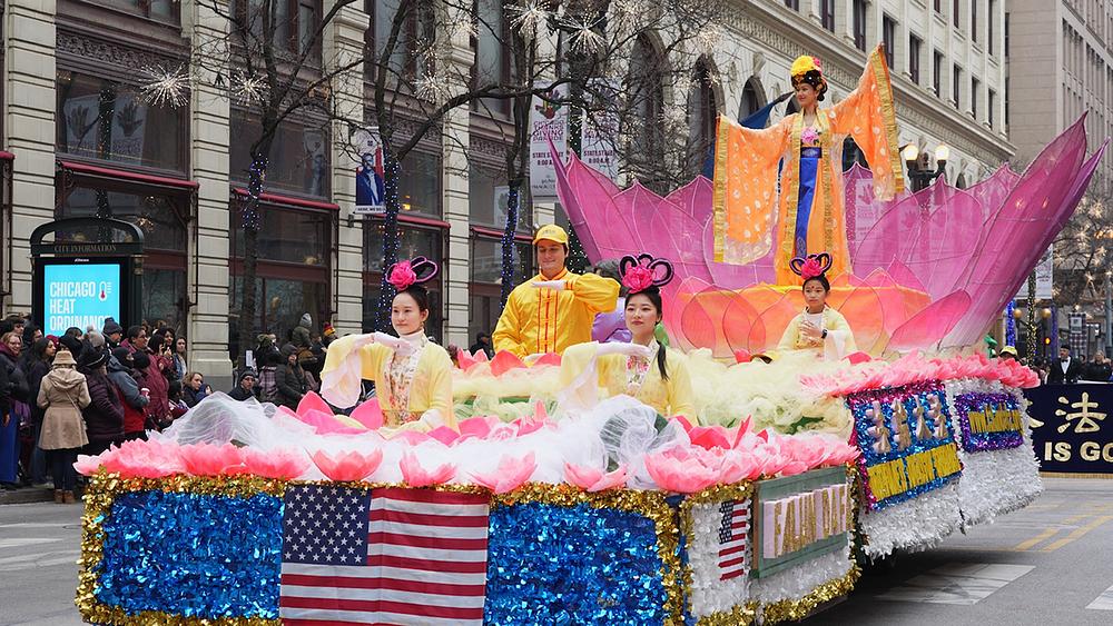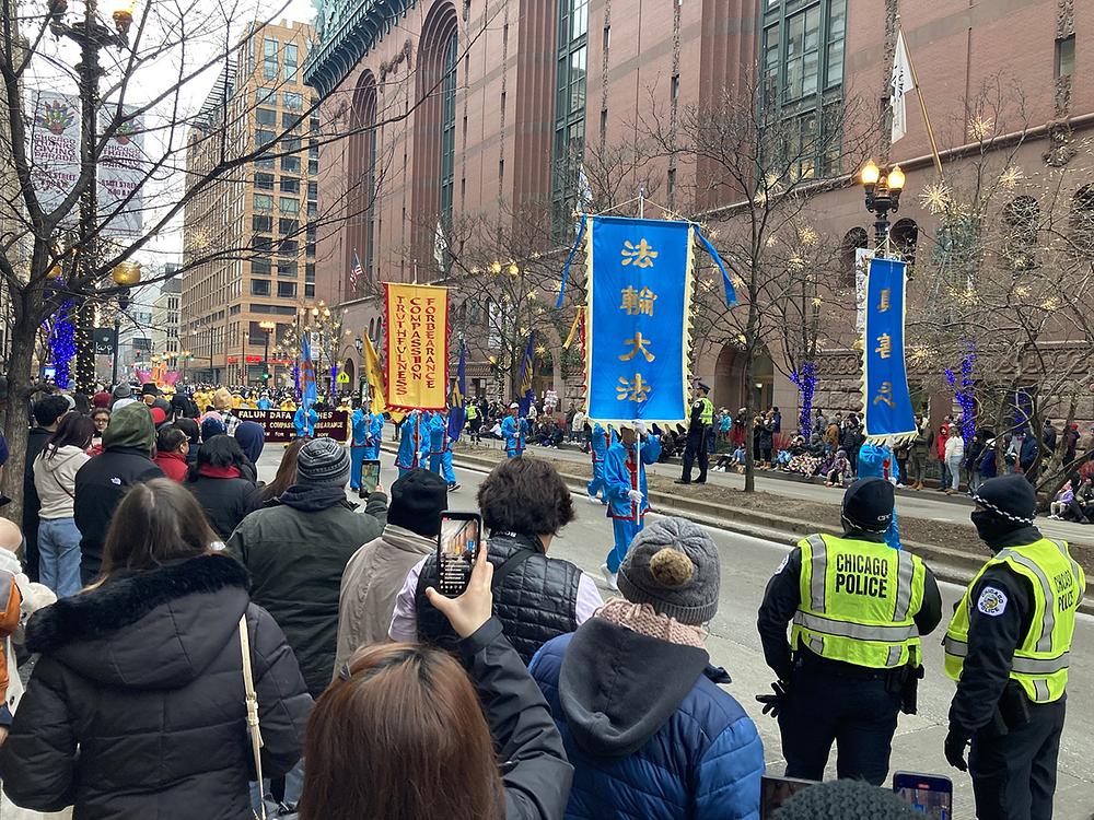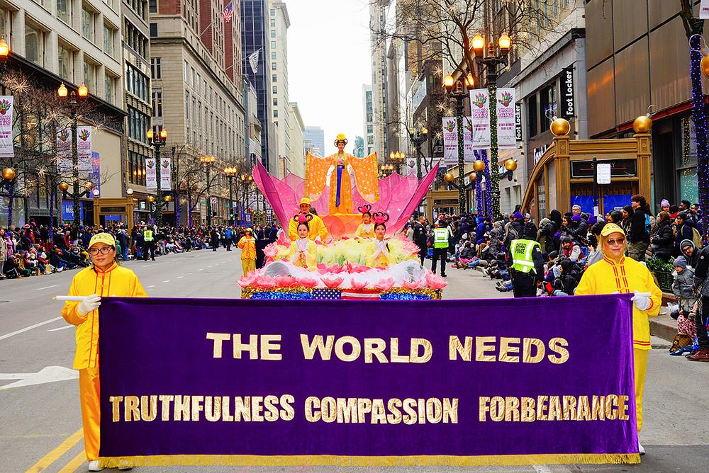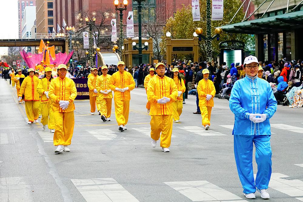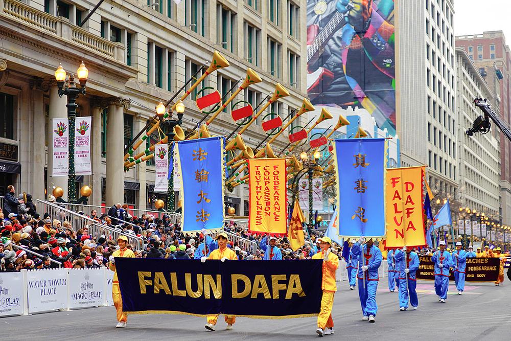 Ovo je bila 19. godina za redom da su praktikanti učestvovali u paradi povodom Dana zahvalnosti u Chicagu. Predvođeni barjaktarskom grupom, nosili su transparente ispisane na kineskom i engleskom jeziku, a pratili su ih praktikanti koji su demonstrirali Falun Dafa vježbe i veliki, izvrsno ukrašen pokretni splav.