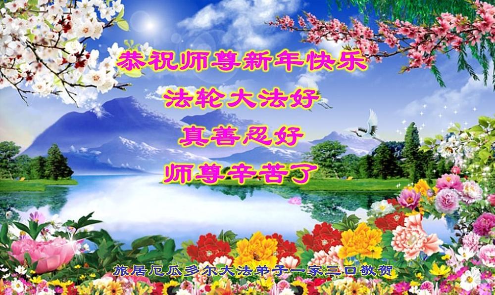 Novogodišnja čestitka iz Hokkaida, JapanNovogodišnja čestitka iz Sydneya, AustralijaFalun Dafa praktikanti u Torontu, Kanada, žele Učitelju Liju sretnu Novu godinu. U sredini je izrez papira s riječima "Falun Dafa je dobar."Novogodišnja čestitka iz Washingtona, D.C.“Hvala vam, Učitelju Li što ste nam dali mudrost i sposobnosti da spašavamo ljude”, napisali su praktikanti u Francuskoj.Novogodišnja čestitka iz austrijskog GrazaPozdrav iz turističkog mjesta Jalan Alor u MalezijiPraktikanti iz New Jerseyja žele Učitelju Liju sretnu Novu godinu.Praktikanti iz Houstona, Texas, dostavili su pjesmu: