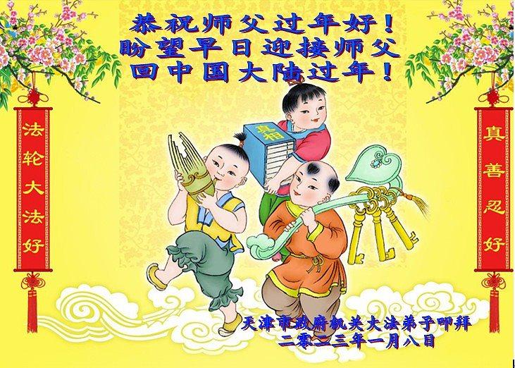 Sa dolaskom kineske Nove godine 2023, mnogi Falun Dafa praktikanti koji rade u kineskim vladinim agencijama, uključujući organe za sprovođenje zakona, tužilaštva, sudove i pravosudne biroe, uputili su svoje najbolje želje Učitelju Liju, osnivaču Falun Dafa, za srećnu kinesku Novu godinu.