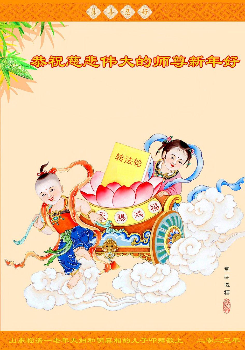 Jedna velika porodica iz grada Zhuchenga, provincija Shandong, ima 8 članova koji prakticiraju Falun Dafa. „Slijedeći principe Istinitost-Dobrodušnost-Tolerancije u svakodnevnom životu, dajemo dobre primjere čineći našu porodicu skladnom i sretnom”, piše u čestitcki. „Znamo da će KPK uskoro dočekati svoju sudbinu i da će počinitelji odgovarati.”