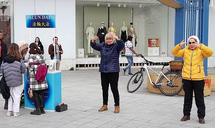 Grupa devojčica sedmog razreda iz škole u Bukureštu zastala je da čuje o Falun Dafi. Pažljivo su slušale dok su praktikanti objašnjavali. Bile su impresionirane naglaskom na moralnim vrednostima koje Falun Dafa ističe i rekli su da se nadaju da će se progon u Kini uskoro okončati.