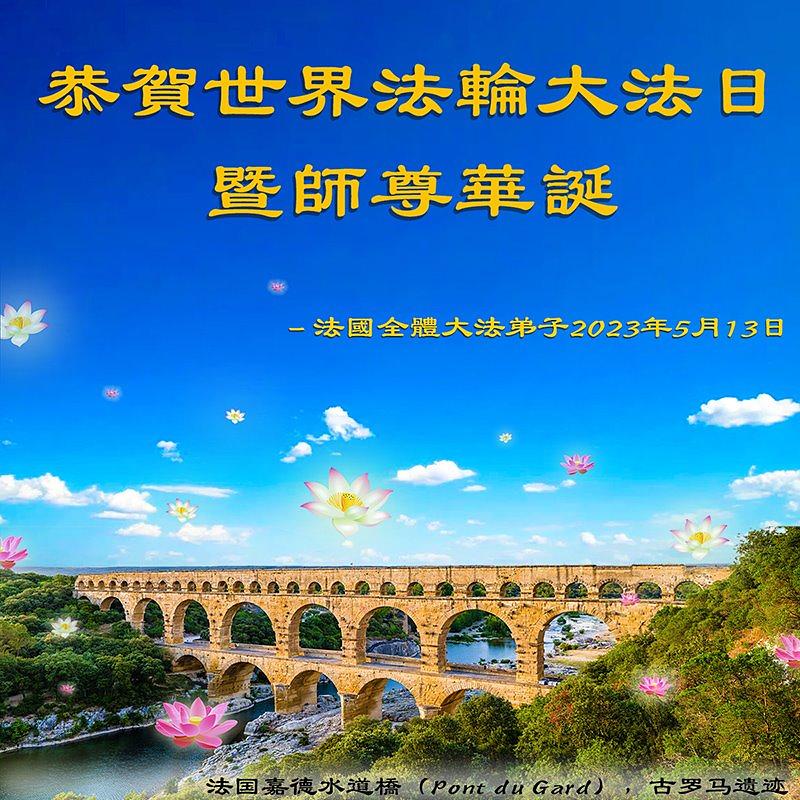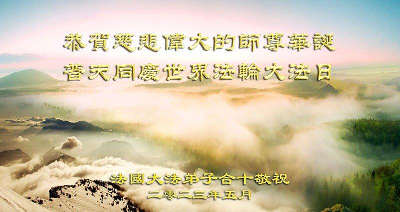Falun Dafa praktikanti iz Francuske slave Svjetski Falun Dafa Dan i žele poštovanom Učitelju sretan rođendan!