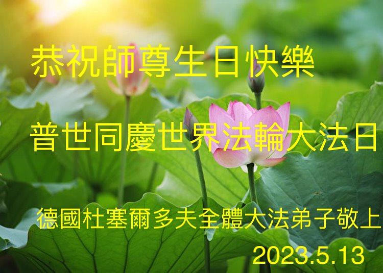 Falun Dafa praktikant iz Diseldorfa u Njemačkoj slave Svjetski Falun Dafa Dan i žele poštovanom Učitelju sretan rođendan!