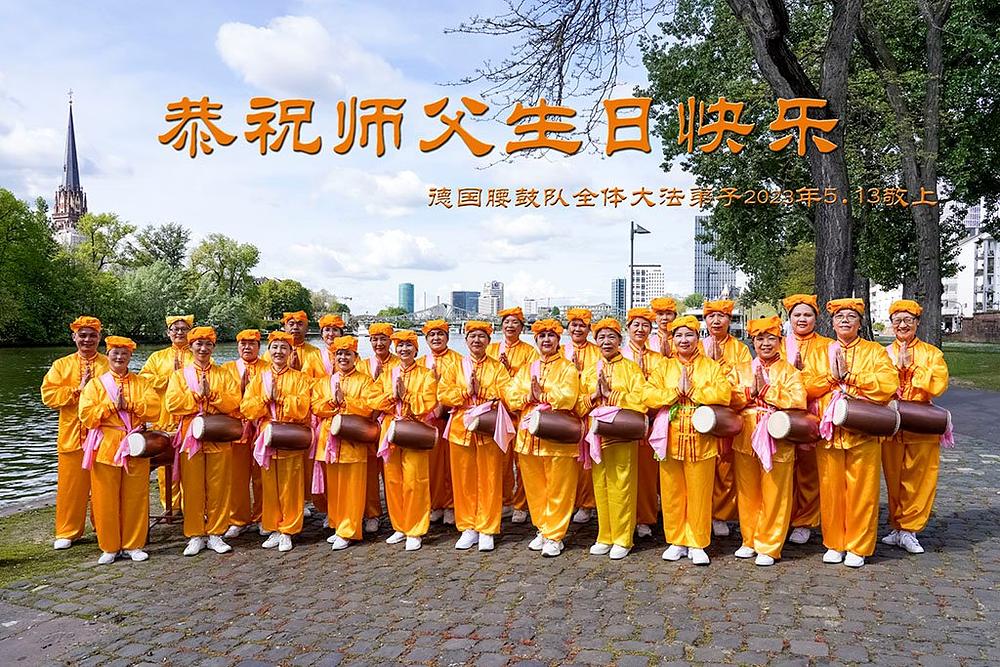 Falun Dafa praktikanti iz dobošarske skupine u Njemačkoj slave Svjetski Falun Dafa Dan i žele poštovanom Učitelju sretan rođendan!