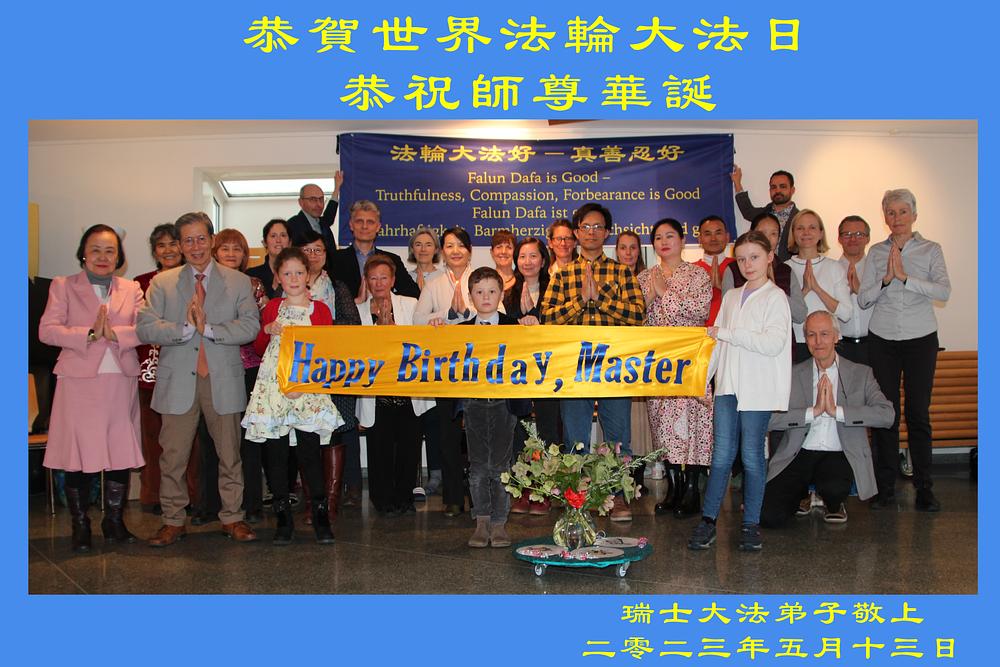Falun Dafa praktikanti iz Švicarske slave Svjetski Falun Dafa Dan i žele poštovanom Učitelju sretan rođendan!