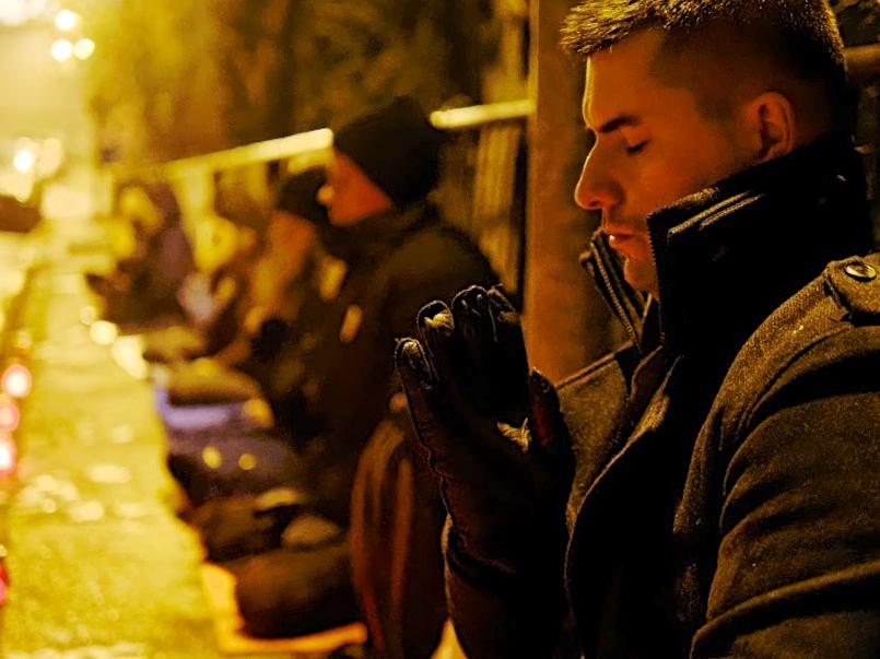 Iako je uoči ponoći oko njih nastala buka zbog novogodišnje proslave praktikanti su ostali sjediti u meditaciji.