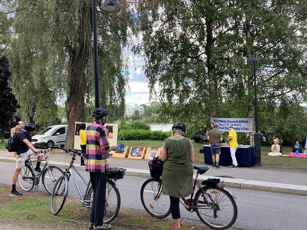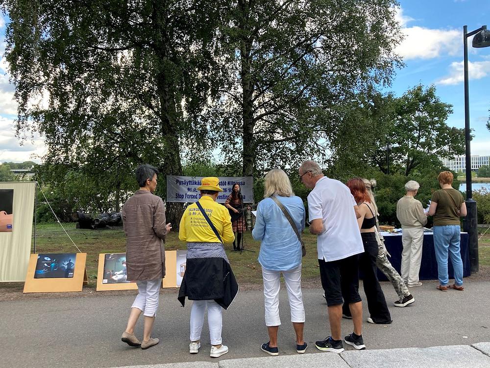 Izložba postera „Zaustavite prisilnu žetvu organa“, u organizaciji Falun Dafa asocijacije Finske, je održana u Hesperia Parku u Helsinkiju po prvi put tokom godišnjeg Helsinškog festivala 17. avgusta 2023. godine.