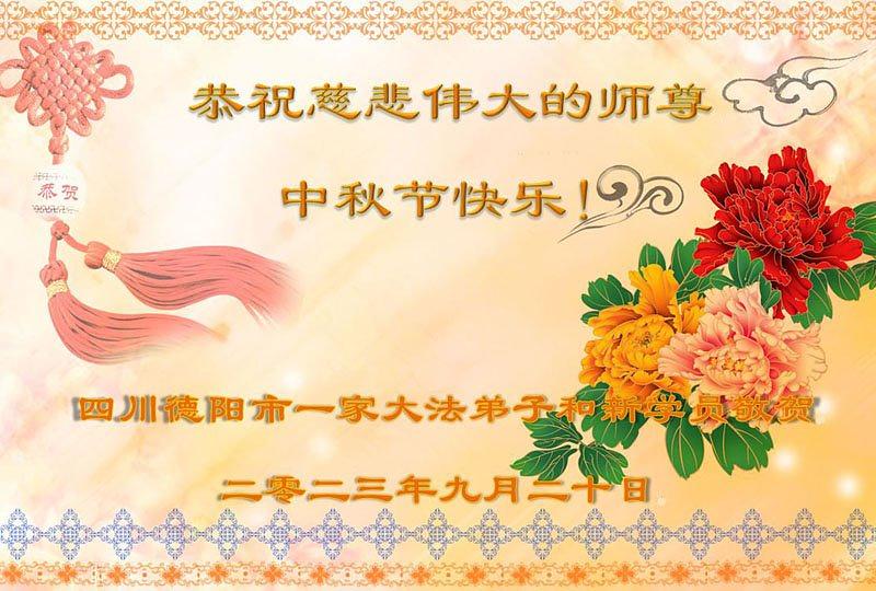 Praktikant iz grada Guang’an, provincija Sichuan, napisao je: „Želim Učitelju sretan Festival sredine jeseni. Nedavno sam počeo prakticirati Dafa. Nakon toliko godina traženja, konačno sam ga našao! Tako sam sretan što sam naišao na Dafa!”