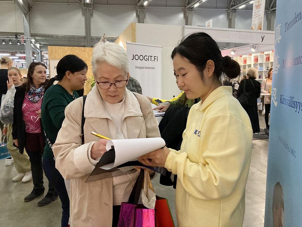 Više od 56.000 ljudi je od 20. do 22. listopada prisustvovalo sajmu zdravlja u Helsinkiju na temu „Volim svoje zdravlje.“ Na sajmu su prezentirani trenutni trendovi u ljepoti, modi i wellnessu. Praktikanti su imali štand na kojem su davali informacije o Falun Dafa i poučavali vježbama. Otprilike 30 ljudi prisustvovalo je svakoj sesiji i mnogi su ljudi naučili vježbe tijekom trodnevnog događaja.