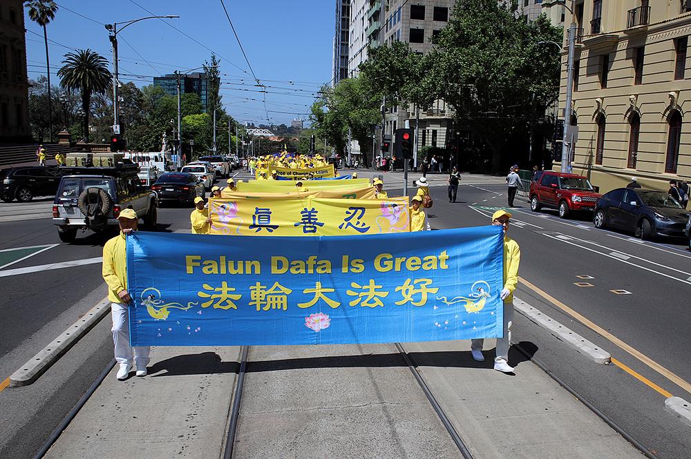 Matthieu i Louna iz Pariza bili su uzbuđeni kada su vidjeli Falun Dafa paradu u Melbourneu. Sretno su se fotografisali ispred parade. Luna je rekla: „Mislim da je ova parada prelijepa i učinila je da osjetim potpuno novi svijet. Istinitost, Dobrodušnost i Tolerancija mogu pomoći svijetu da se razvije u pozitivnom smjeru.”
