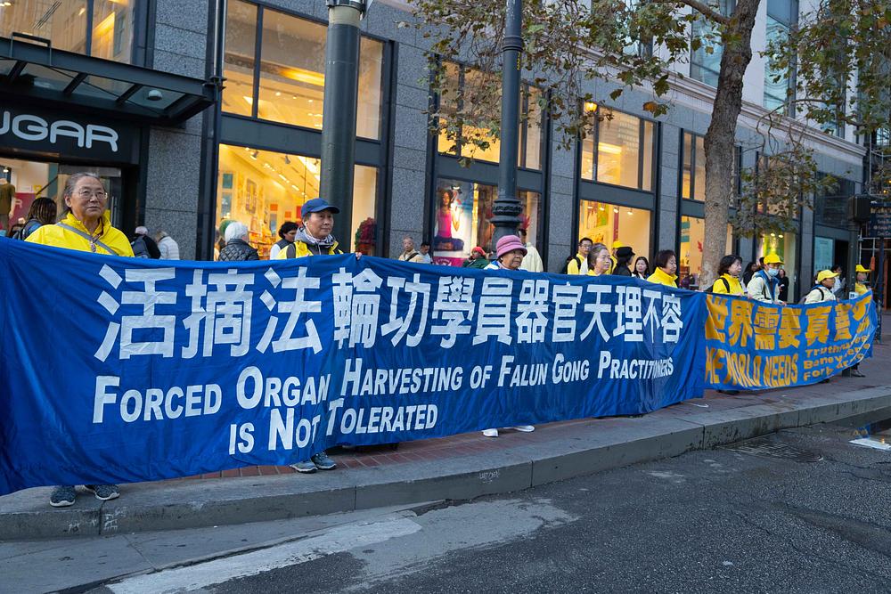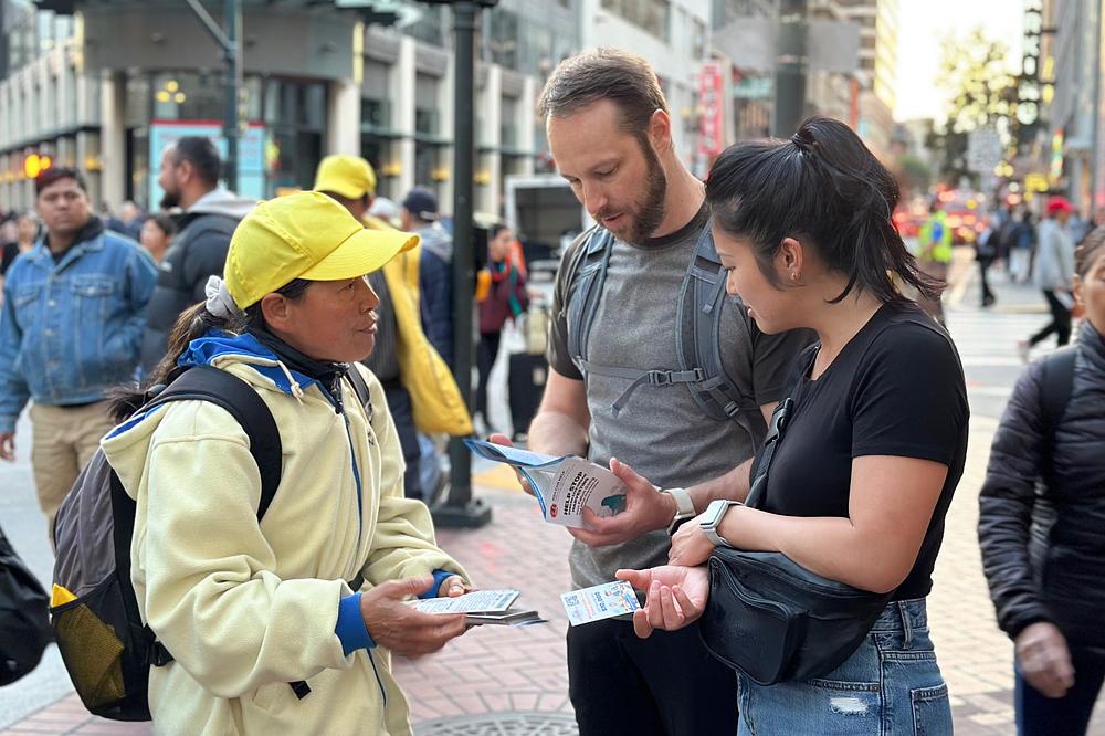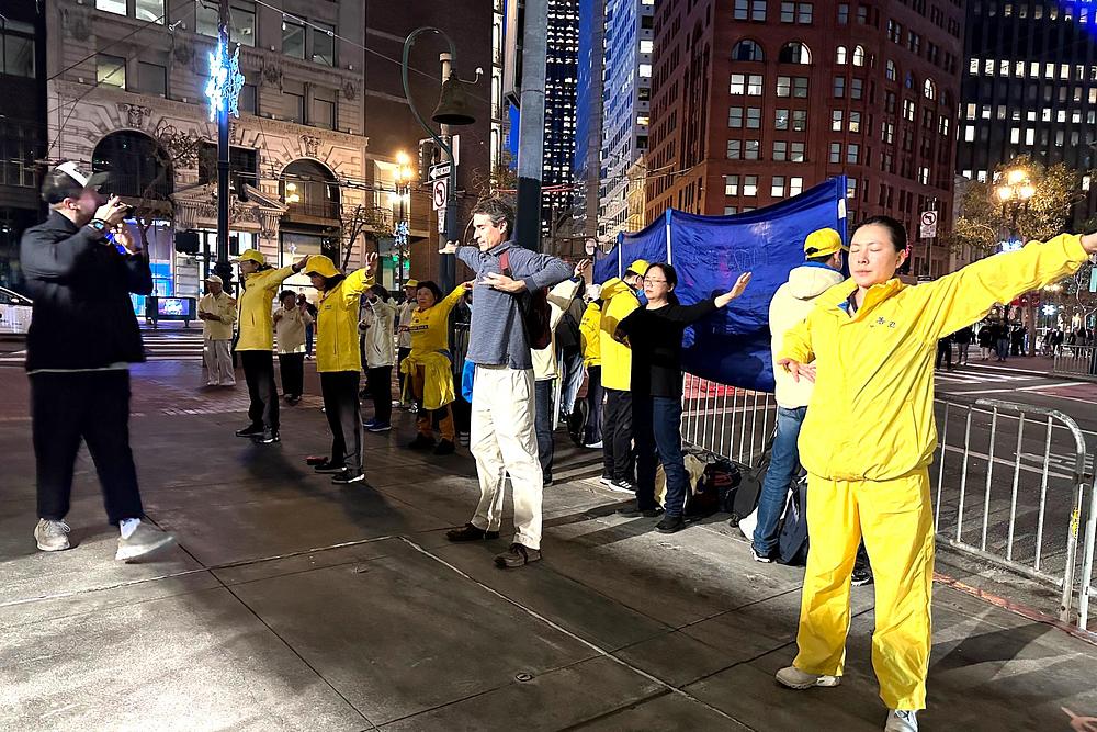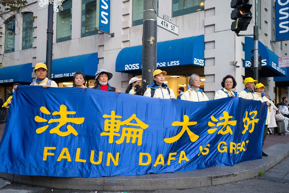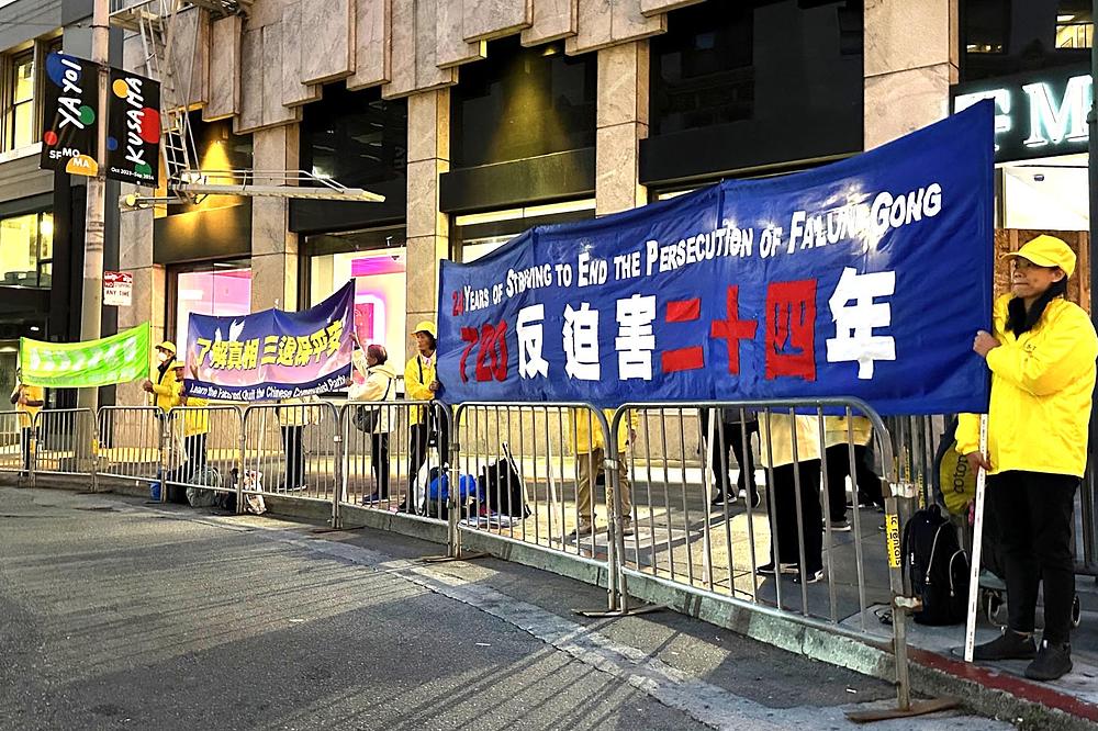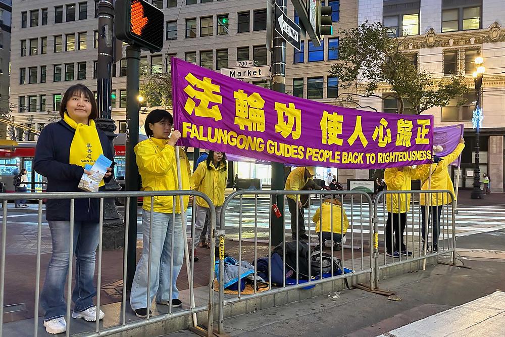 Praktikanti duhovne prakse Falun Dafa održali su miran prosvjed u blizini Moscone centra gdje se održava summit Azijsko-pacifičke ekonomske suradnje (APEC), 14. studenog 2023. Skrenuli su pozornost na 24-godišnji progon Falun Dafa kojeg provodi Komunistička partija Kine (KPK). Predstavljali su duhovnu praksu posjetiteljima i informirali ih o zločinima KPK-ovog progona praktikanata. Praktikanti su pozvali vlade svake zemlje da pomognu okončati ova nečuvena kršenja ljudskih prava.