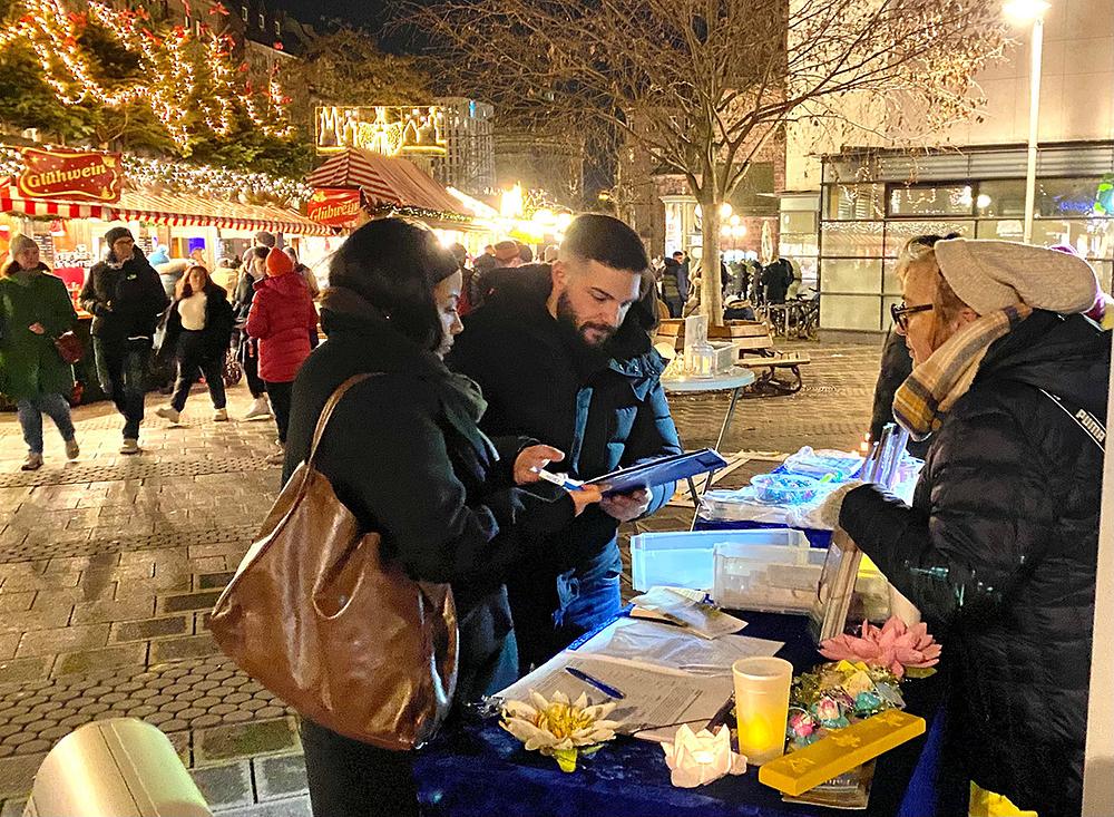Na dan događaja, praktikanti su zapalili sveće na trgu Hallplatz u znak sećanja na praktikante koji su u Kini mučeni do smrti. Mnogi turisti koji su posetili božićnu pijacu u Nirnbergu zastali su da pročitaju informacije, a neki su razgovarali sa praktikantima. Saznavši činjenice, oni su potpisali peticiju da podrže praktikante u pozivanju na prekid progona.