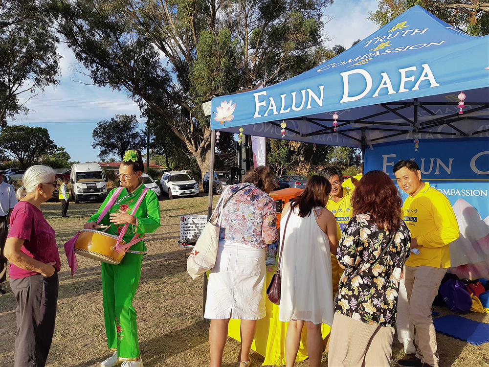 Vijetnamska zajednica održala je proslavu kineske Nove godine 16. i 17. februara u Pertu, Australija, i praktikanti su pozvani da učestvuju i predstave Falun Dafu. Australijski senator se zaustavio na njihovom štandu da izrazi svoju podršku.
