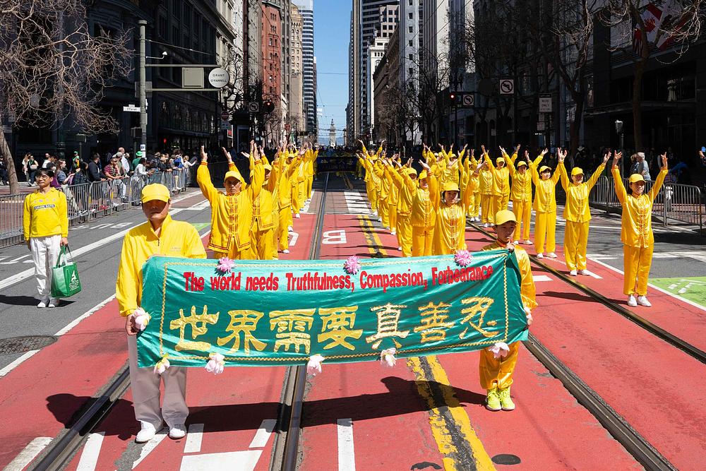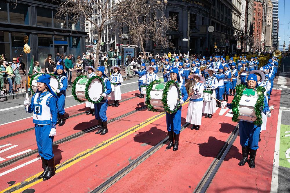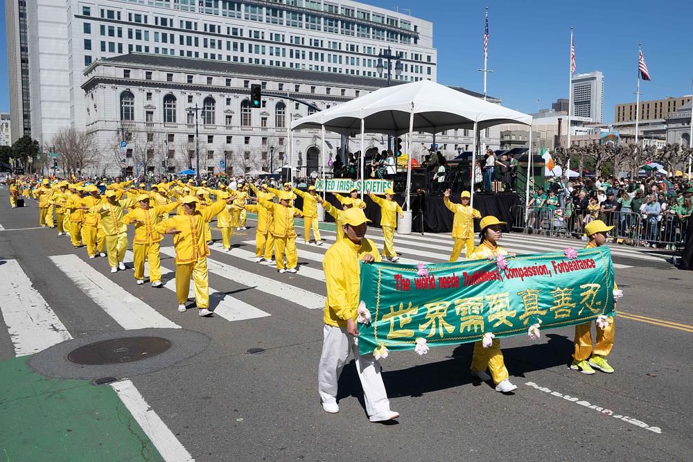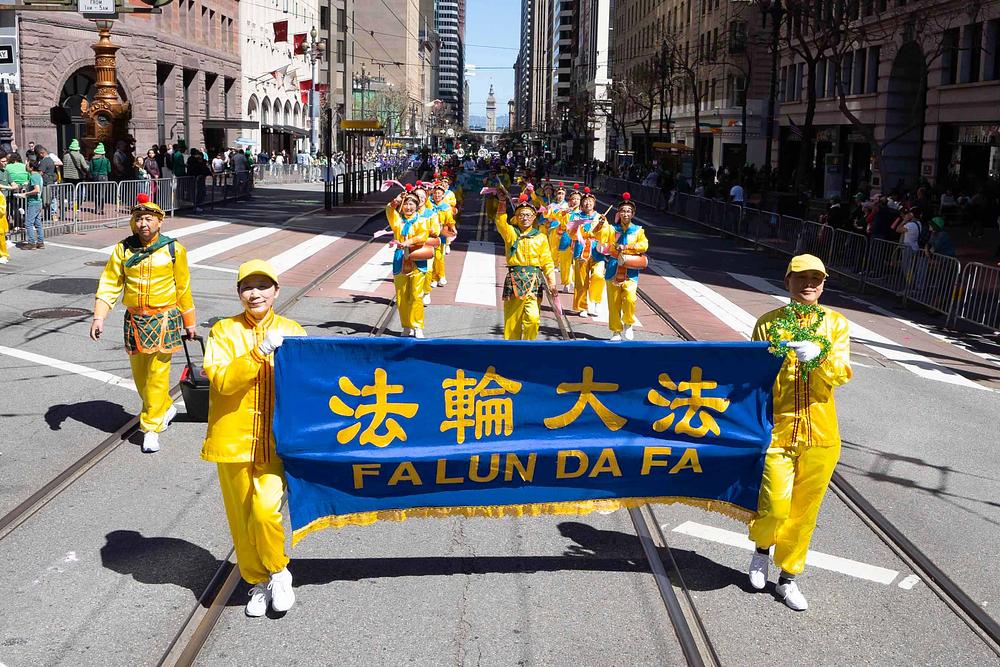 Grad San Francisco bio je ispunjen prazničnim ozračjem, a ulice su bile prepune gledatelja parade. Falun Dafa grupa uključivala je tim za demonstraciju vježbi, tim za bubnjare i Tian Guo Marching Band iz Zapadnih SAD. Do sada, Falun Dafa grupa drži rekord kao najveći tim u gradskoj povorci za Dan svetog Patrika. Mnogi su gledatelji plesali uz glazbu koju je svirao Tian Guo Marching Band, neki su se radosno fotografirali s praktikantima, a drugi su im izražavali podršku.