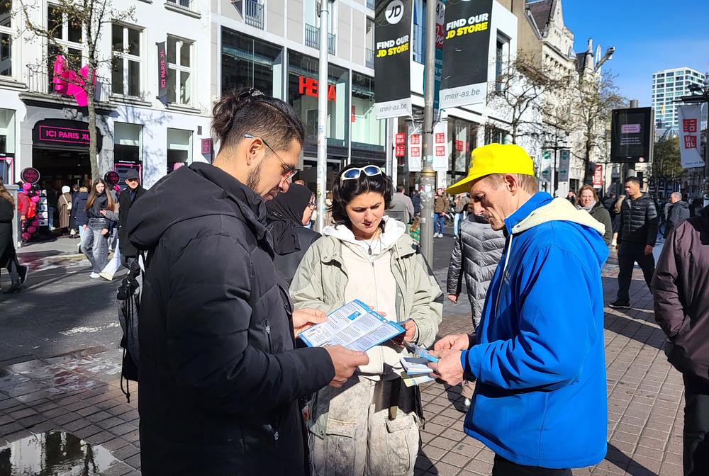 Falun Dafa praktikanti su u centru grada Antwerpena 23. marta 2024. održali informativni dan kako bi predstavili Falun Dafa, tradicionalnu praksu uma i tijela. Nakon što su saznali kako Komunistička partija Kine (KPK) progoni ovu duhovnu disciplinu, mnogi ljudi su potpisali peticije pozivajući da se prekine brutalnost, a dva kineska studenta su napustila organizacije KPK kojima su se prethodno pridružili.