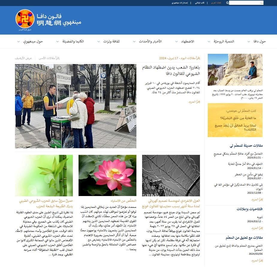 Arapsko izdanje web stranice Minghui službeno je pokrenuto u aprilu 2024. Ovo je 24. jezik na koji je preveden glavni kineski sajt. Kao i kod kineskog Minghui, nadamo se da će ova nova web stranica mnogima u svijetu sa arapskog govornog područja pružiti informacije o Falun Dafa i Falun Dafa kultivaciji.