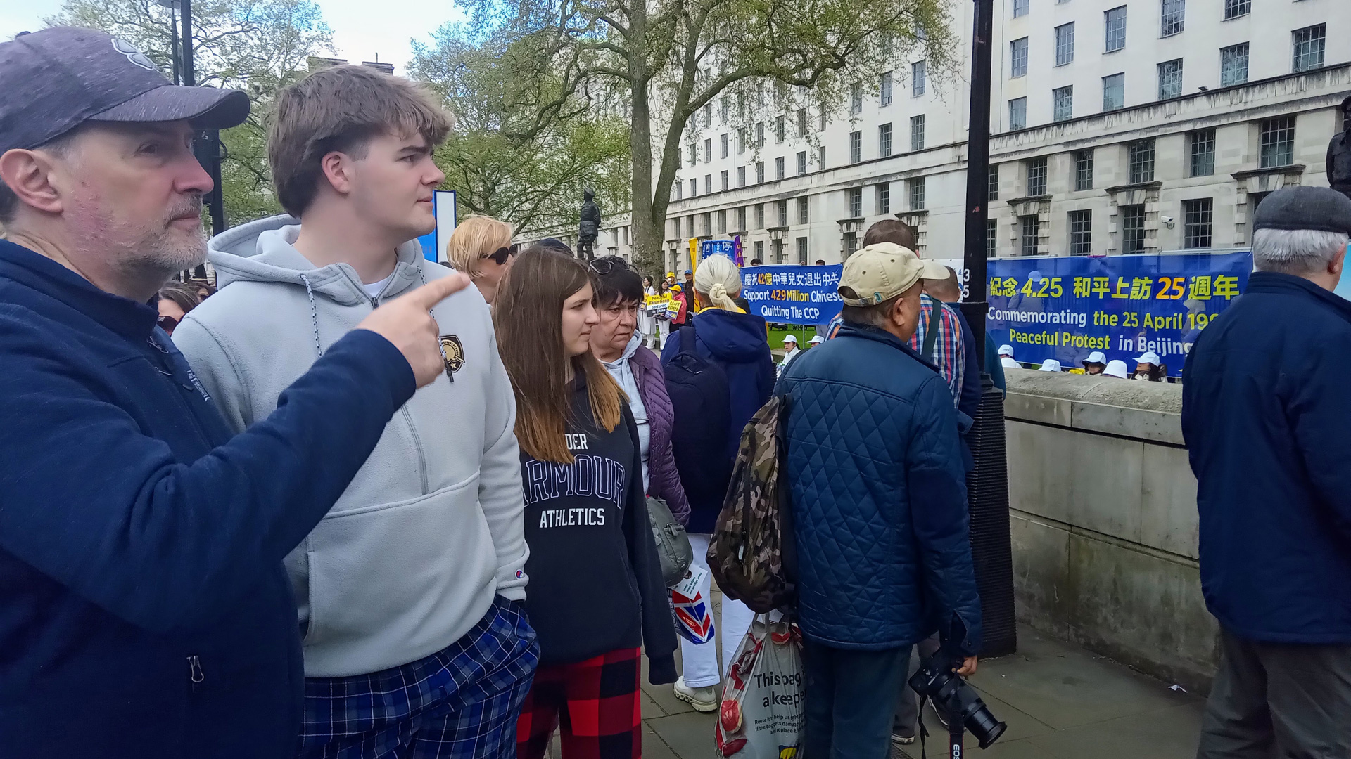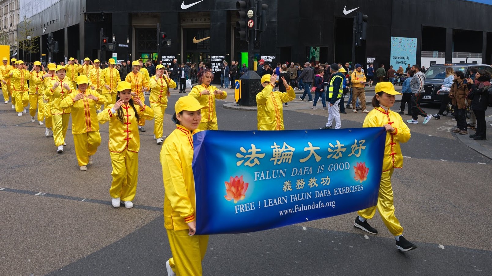 Praktikanti su održali paradu u središtu Londona 20. travnja 2024. u znak sjećanja na 25. godišnjicu apela održanog 25. travnja 1999. godine u Pekingu. Predstavili su Falun Dafa (također poznat kao Falun Gong) i prosvjedovali protiv progona kojeg vrši Komunistička partija Kine (KPK). Povorka je prošla kroz poslovnu zonu Londona i kinesku četvrt, a završila je preko puta ureda premijera. Nakon toga je održana konferencija za novinare.