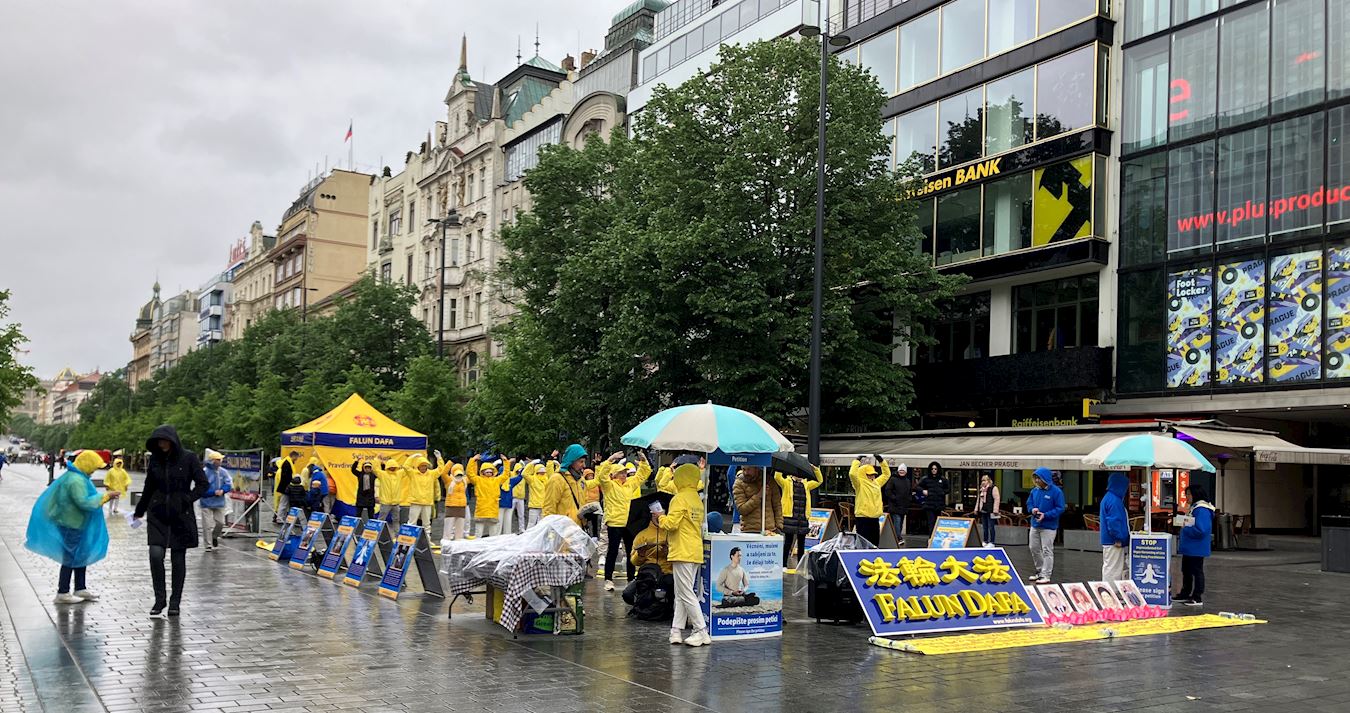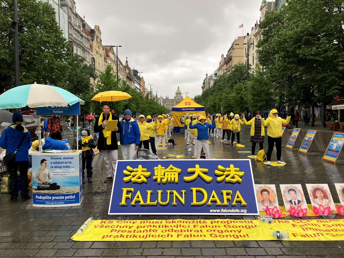 Praktikanti su ujutro 20. aprila održali aktivnosti na prometnom Vaclavskom trgu („Vaclavske namesti“ na češkom), koji se nalazi u centru glavnog grada i posećuju ga i lokalno stanovništvo i turisti iz celog sveta. Aktivnosti su uključivale javnu prezentaciju Falun Dafe, demonstracije vežbi, informativne panoe i peticije za potpisivanje.