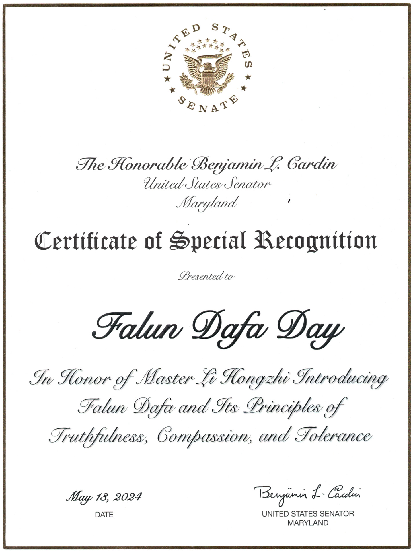 Senator iz Sjedinjenih Država Ben Cardin iz Marylanda izdao je posebno priznanje u čast 25. po redy Svjetskog dana Falun Dafa.