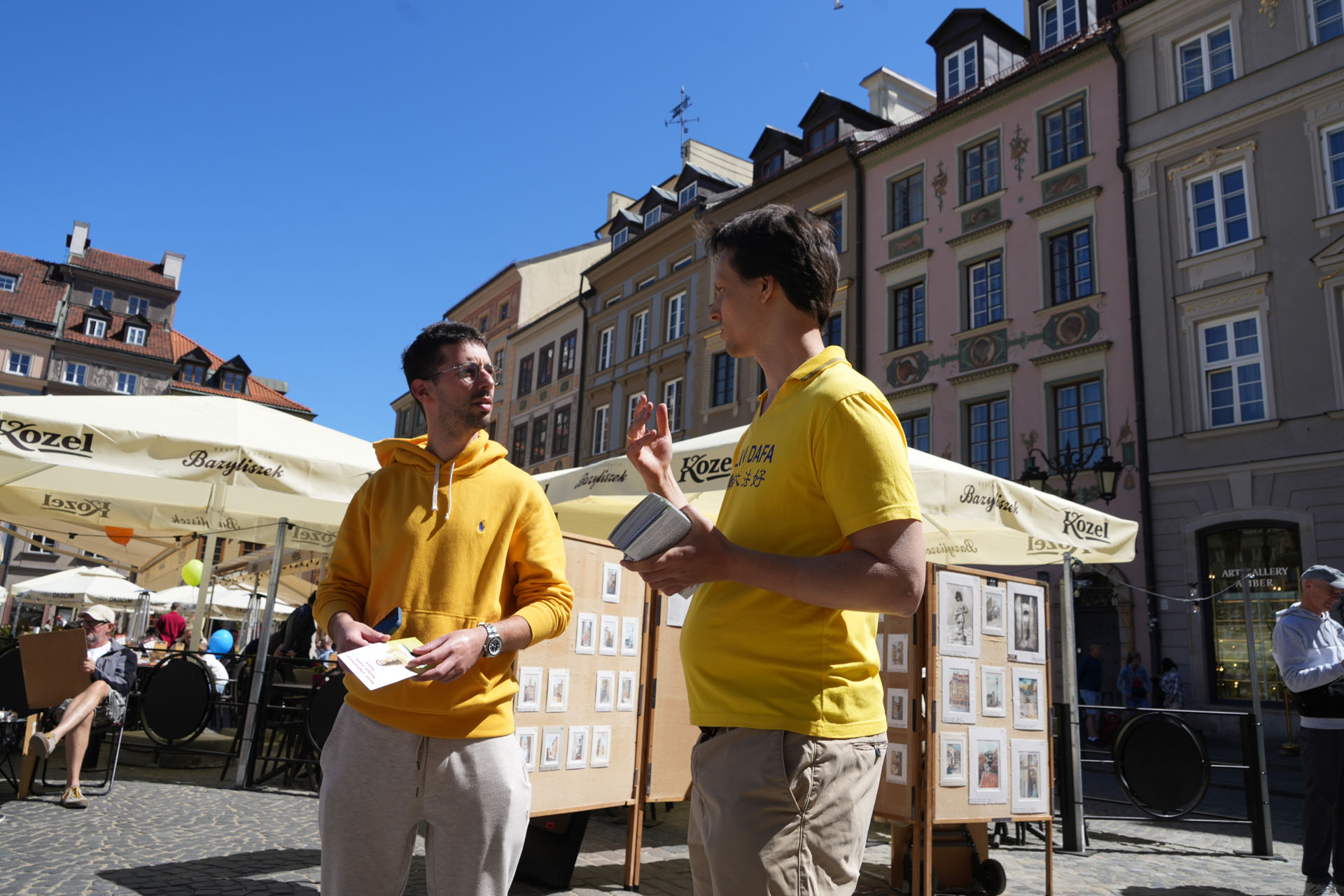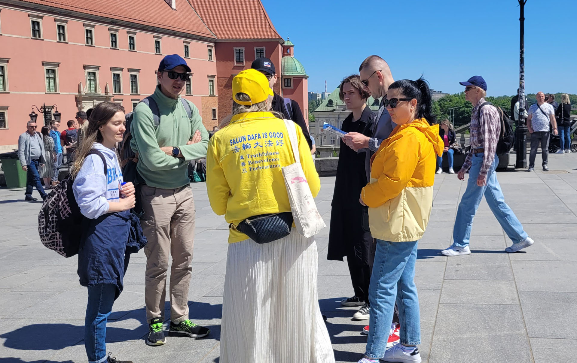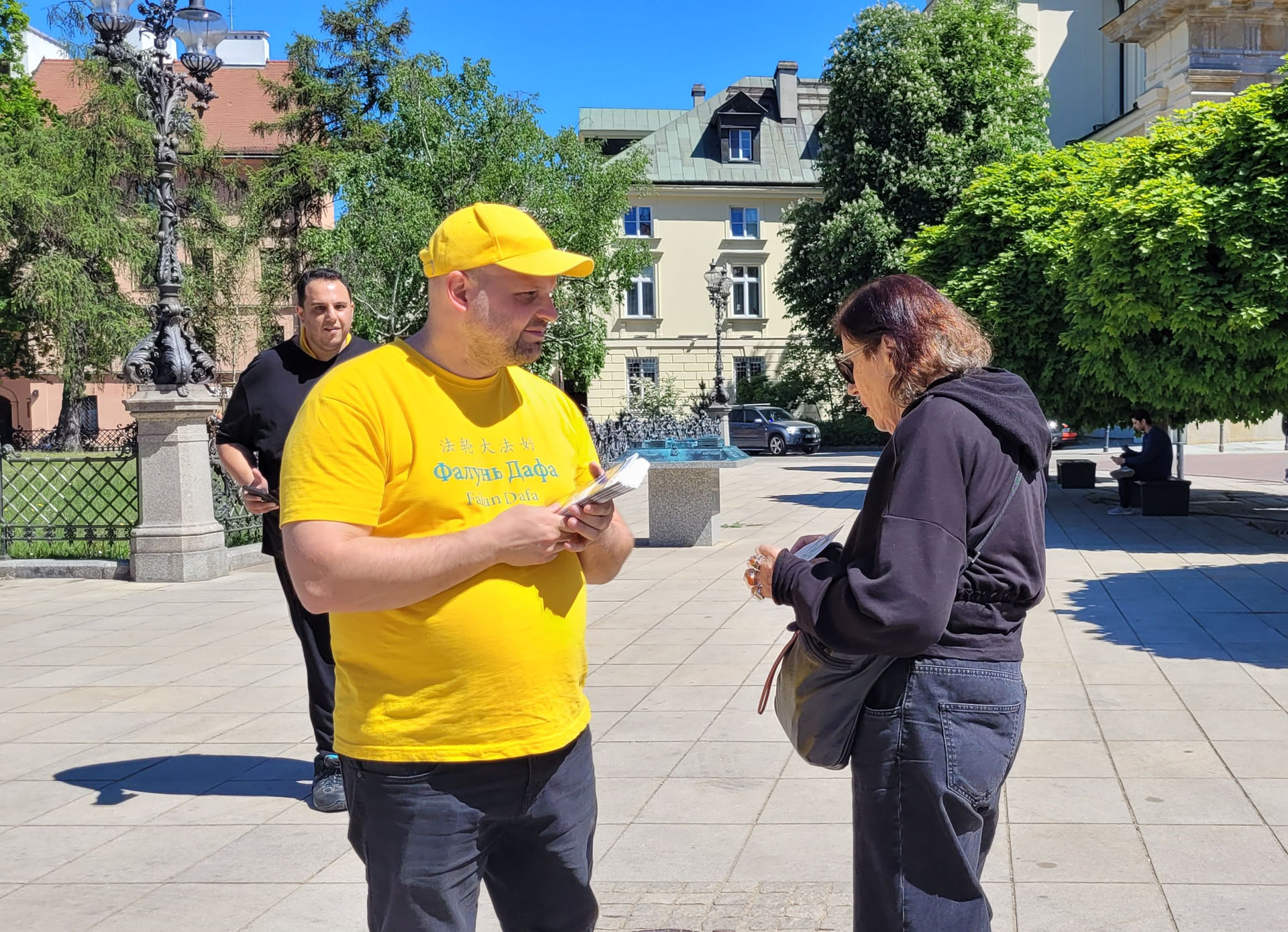 Jedan je Kinez bio u posjeti Starom gradu sa svojom porodicom. Nasmiješio se praktikantu i rekao da zna za Falun Dafa. “Zanimljivo je da toliko Poljaka uči Falun Dafa i tradicionalnu kinesku kulturu, ali KPK opako potiskuje ovu praksu,” rekao je. “Partija je tako loša i nadam se da će uskoro završiti.”