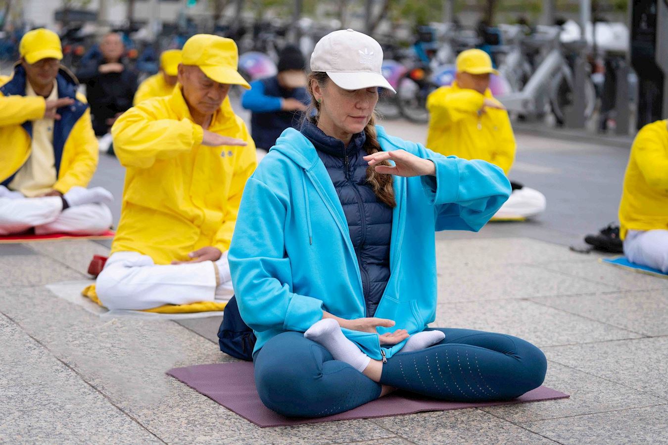 Predstave su privukle pažnju mnogih prolaznika. Arin i njegova supruga Shay iz Los Angelesa su zastali i gledali. Shay je rekla da je osjećala mir gledajući praktikante kako rade vježbe. “Na najprometnijim ulicama na svijetu praktikanti spokojno rade vježbe. Zanimljivo je da su u stanju ostati koncentrisani, možete osjetiti kako energija prolazi kroz ovo mjesto.”