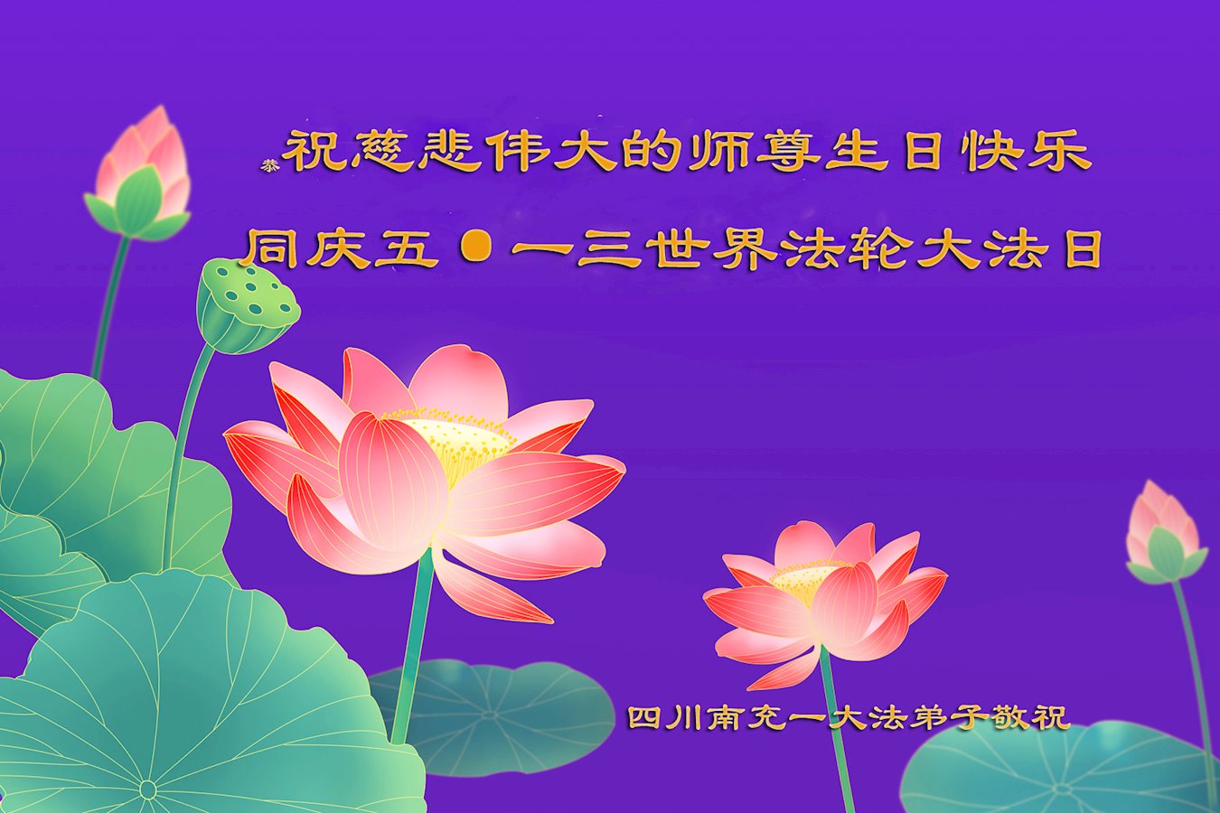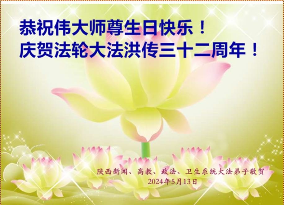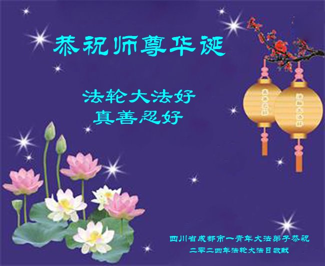 Kao i obično, na ovaj Svetski dan Falun Dafe, praktikanti u Kini su nastavili da šalju svoje iskrene čestitke proslavljajući javno predstavljanje Dafe i želeći Učitelju Liju srećan rođendan. Ni iskazuju svoju duboku zahvalnost Učitelju i obećavaju da će biti marljiviji u svojoj kultivaciji i pomoći većem broju ljudi da sazna koliko je Falun Dafa divna.