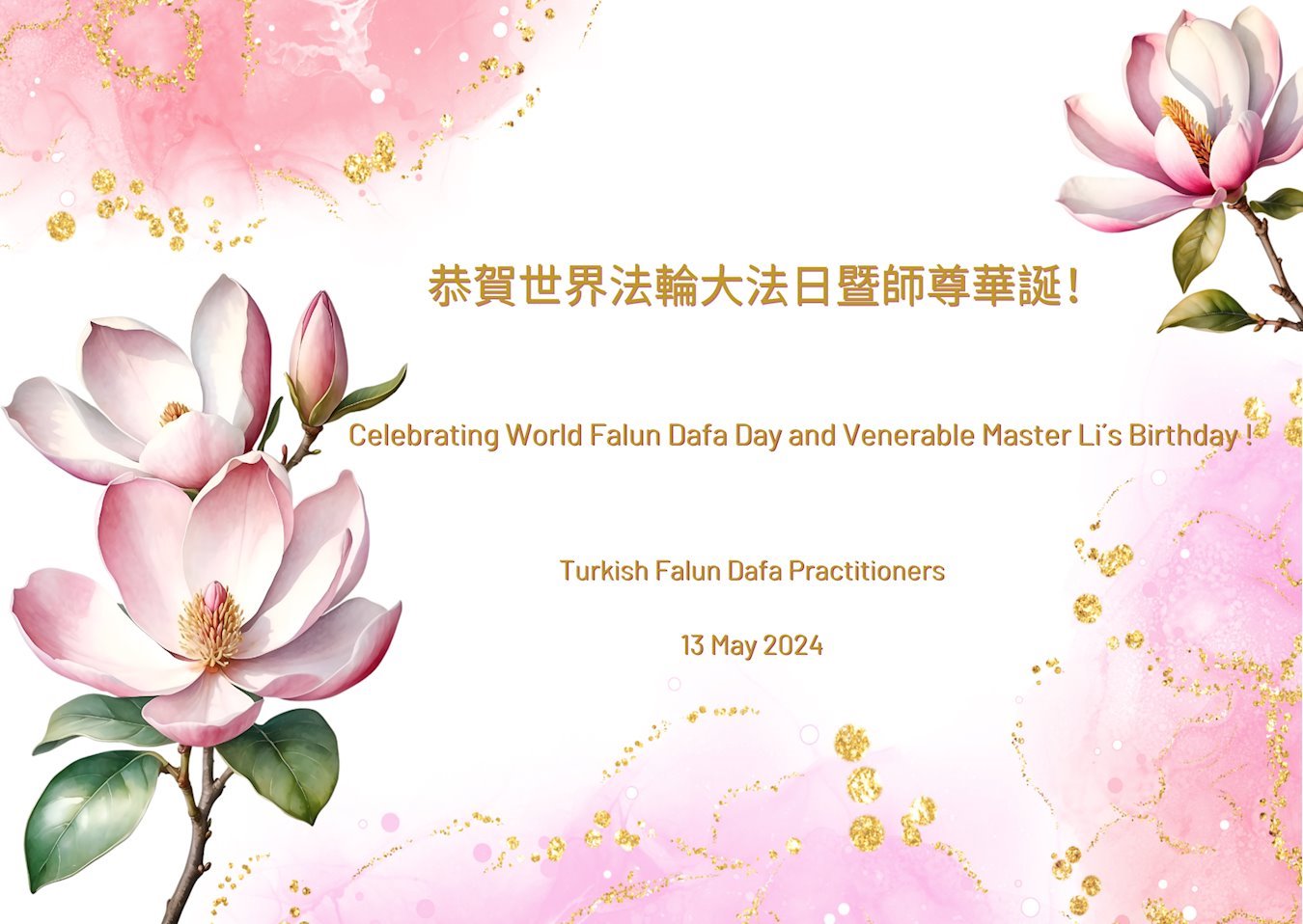 Ove godine, mesec obeležavanja 25. Svetskog dana Falun Dafe počeo je objavljivanjem članka „Taj nezaboravni 13. maj” 20. aprila na kineskom sajtu Minghui. Od tada su objavljene hiljade čestitki praktikanata iz preko 100 zemalja, kao i članaka, pesama, muzičkih kompozicija i slika. Ovi praktikanti su izrazili svoju iskrenu zahvalnost Učitelju Liju što podučava Falun Dafu u svetu i donosi blagoslove ljudima sveta.