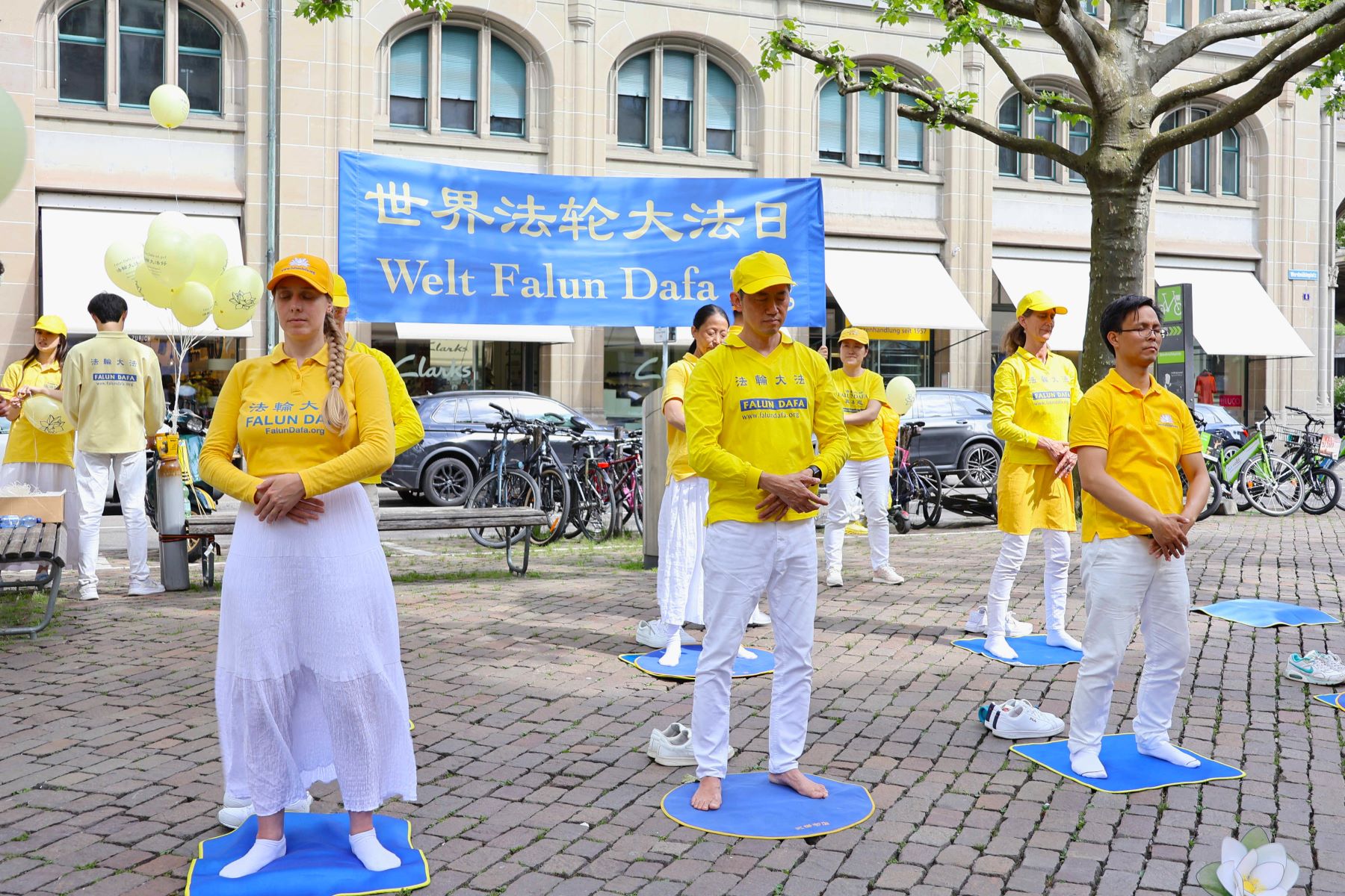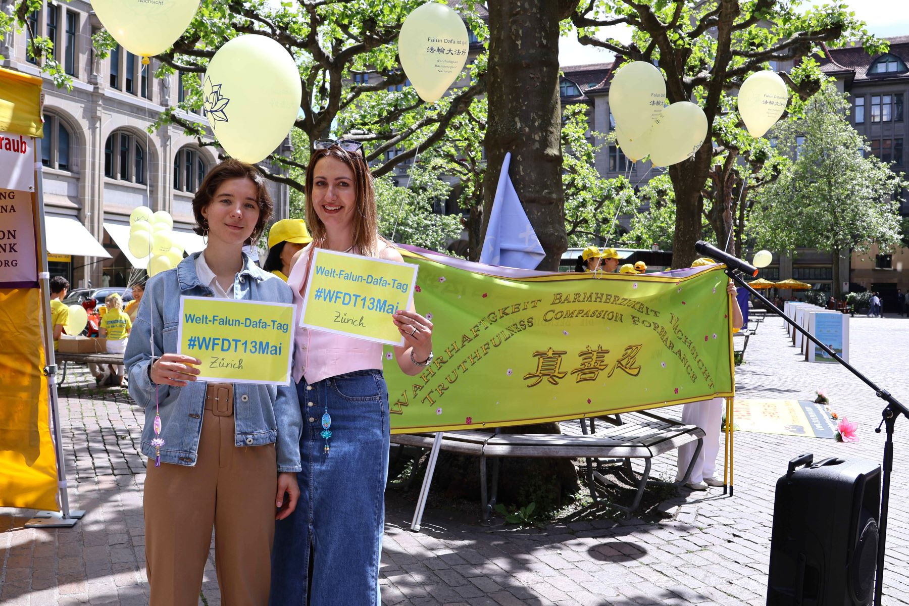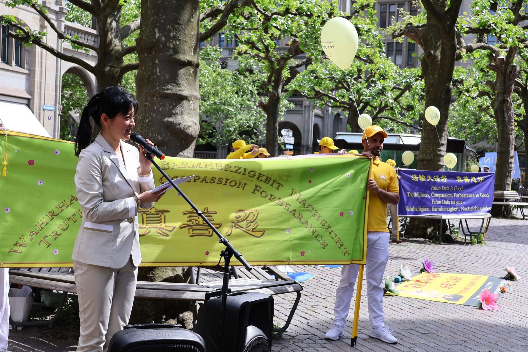 „Cirih je poznat po svojih 1200 fontana, a čista voda je izvor našeg života. Ali prosperitet ljudskog društva zahteva ne samo čistu vodu, već i čist mentalitet i duhovno stanje“, rekao je Falun Dafa praktikant tokom svog uvodnog govora na događaju povodom obeležavanja Svetskog dana Falun Dafe na Verdmuhleplatzu u Cirihu 18. maja 2024.