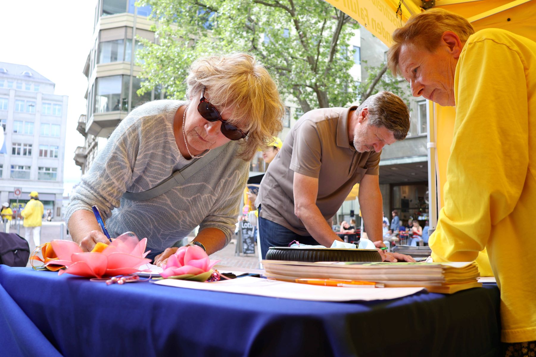 Tokom ovog dnevnog događaja, takođe je postavljen sto za prikupljanje potpisa, pozivajući prolaznike da podrže peticiju kojom se od švajcarske vlade traži da pruži ruku kako bi se zajednički zaustavio progon Falun Dafe od strane Komunističke partije Kine i vađenje organa od živih zatvorenika savesti .