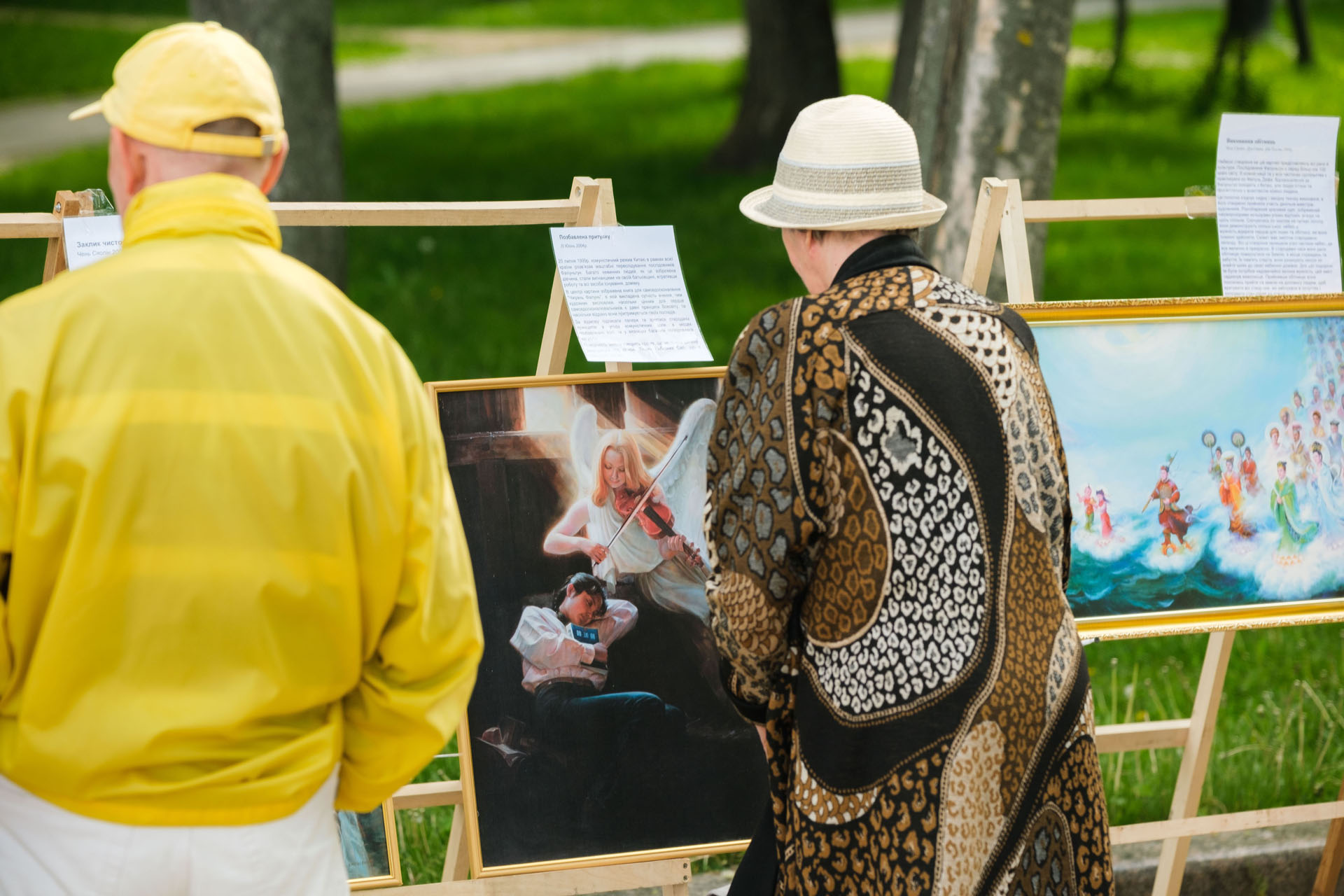 Park je veoma slikovit, ispunjen zelenim, sjenovitim drvećem. Odjeveni u jarko žute jakne, praktikanti su demonstrirali izvođenje pet vježbi, dijelili letke i objašnjavali ljudima šta je Falun Dafa. Također su prikazali umjetničke radove sa izložbe Umjetnost Zhen Shen Ren (Istinitost, Dobrodušnost, Tolerancija). Slike koje su kreirali umjetnici praktikanti prikazuju ljepotu Falun Dafa i otpor praktikanata pred brutalnim progonom u Kini.