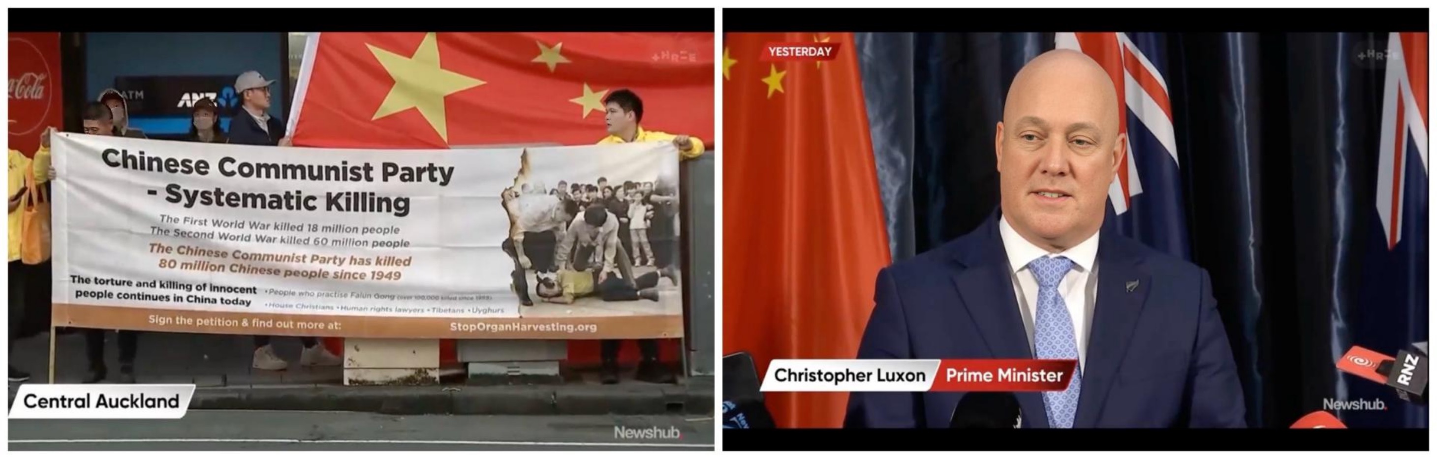 Također je rekao: “Imate pravo prosvjedovati ovdje. Ovi ljudi iz KPK pokušavaju vas spriječiti da prosvjedujete. To se ne bi smjelo dogoditi, pogotovo ne na Novom Zelandu. A vi [praktikanti] ste miroljubivi. Nadam se da ćete nastaviti raditi ono što biste trebali. Vrijedi truda. Vi se borite za pravdu i spašavate i štitite živote.”