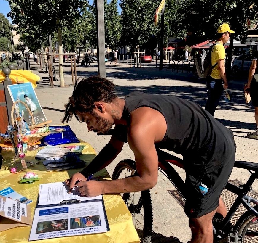 Praktikanti su 22. juna 2024. postavili informativni štand na prometnim ulicama Dragunjana, u jugoistočnom regionu Le Var u Francuskoj. Oni su predstavljali Falun Dafu i pružali informacije o progonu Komunističke partije Kine (KPK), uključujući uzimanje organa od praktikanata.