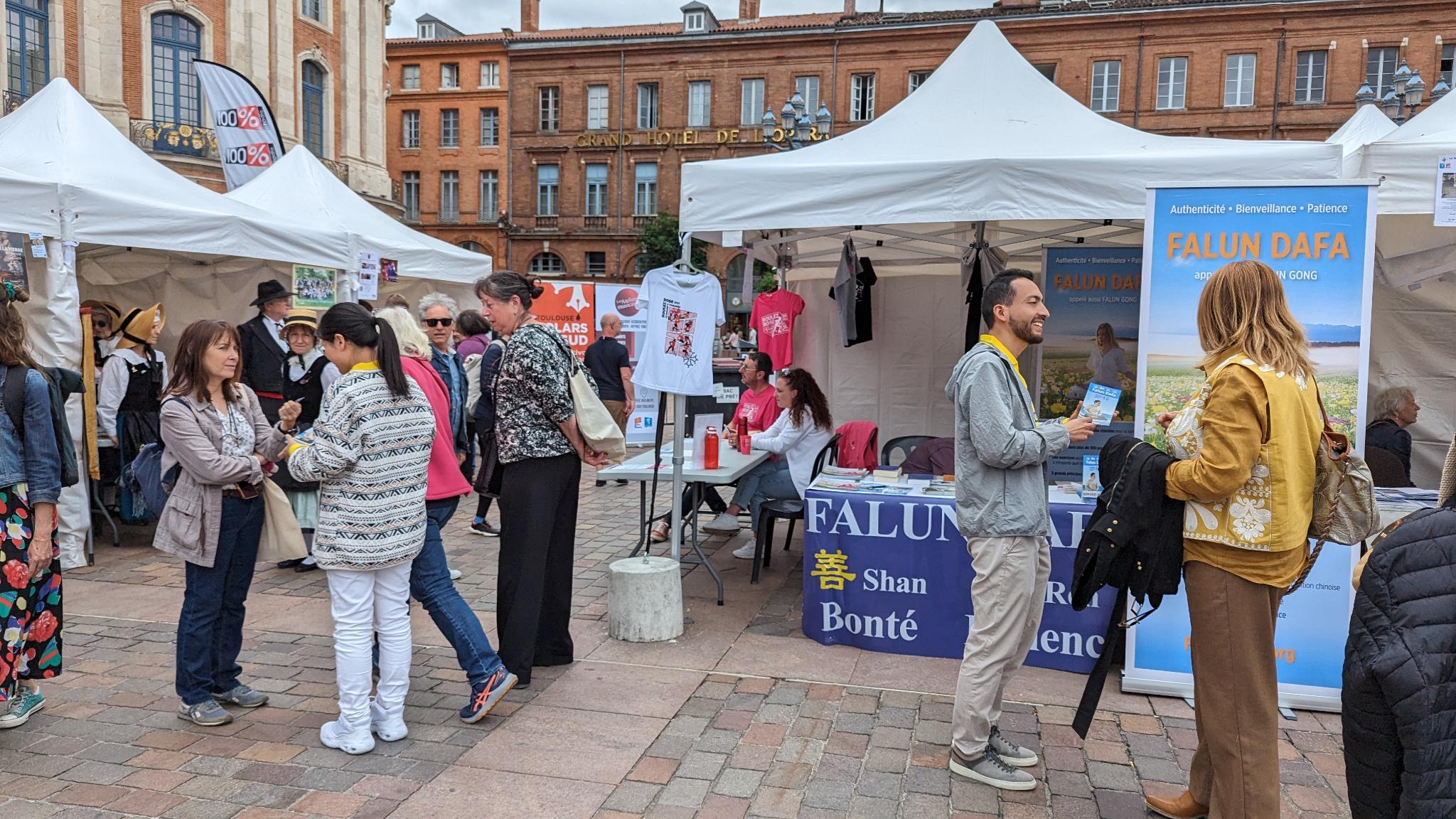 Prethodne subote, 15. juna, praktikanti su učestvovali u društvenom događaju koji je organizovala gradska vlada Tuluza. Oni su predstavili Falun Dafu na Place du Capitole, centralnom gradskom trgu.