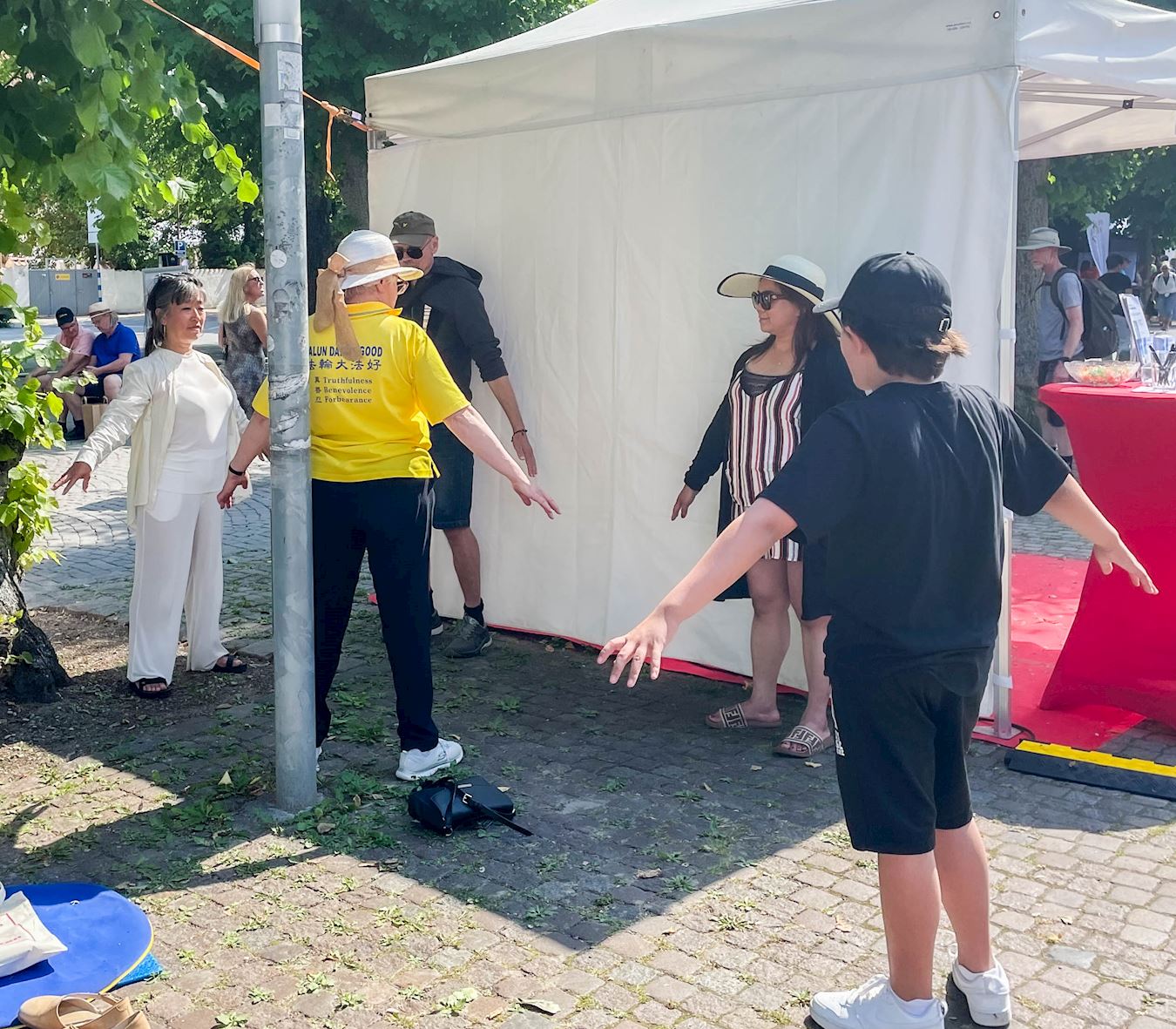 Bračni par je rekao da je znao za Falun Dafa dok su bili u Kini, ali se nisu usuđivali govoriti zbog totalitarne vladavine KPK. Bili su iznenađeni kada su vidjeli toliko mnogo praktikanata drugih nacionalnosti kako prakticiraju Falun Dafa. Bili su sretni što se tradicionalna kineska kultura poštuje i poželjeli su praktikantima sve najbolje.