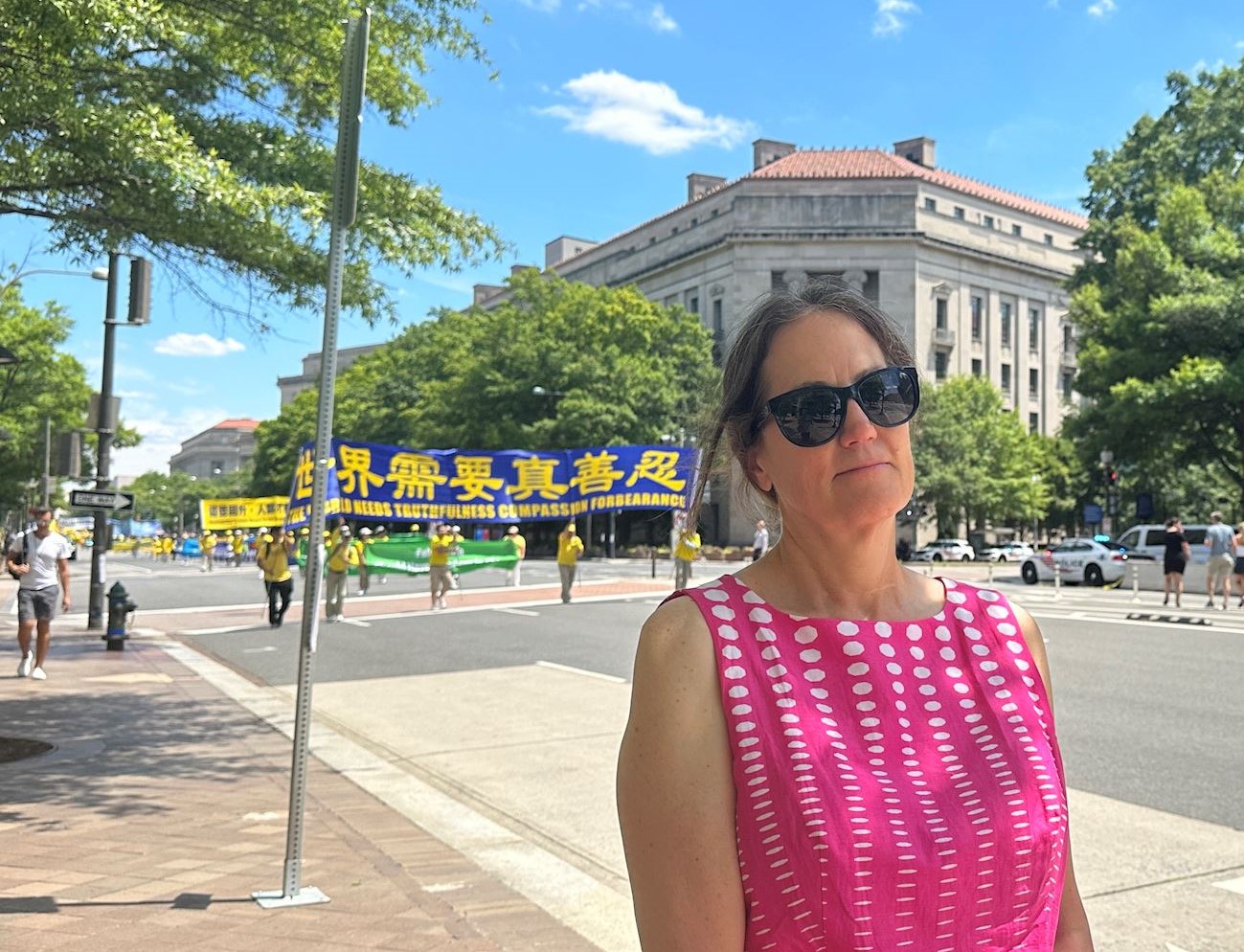Andrea, koja se nedavno preselila u DC iz San Diega, je kazala da je ovo prvi put da su ona i njena djeca ikada vidjeli Falun Dafa paradu. „Parada je prelijepa i veoma mirna“, rekla je.