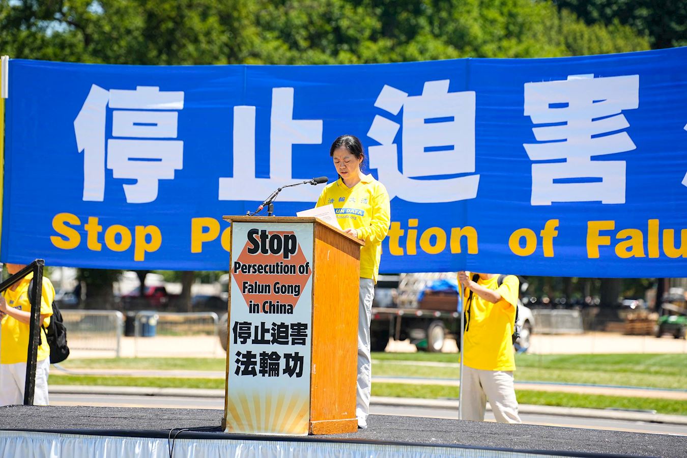 Falun Dafa praktikanti i njegove pristalice su održali skup u National Mall-u u blizini U.S. Capitola 11. jula pozivajući na prekid 25-godišnjeg progona ove duhovne prakse od strane Komunističke partije Kine (KPK). Na skupu je govorilo nekoliko članova Kongresa i visokih zvaničnika, a brojni američki zakonodavci su poslali video pozdrave ili pisma podrške.