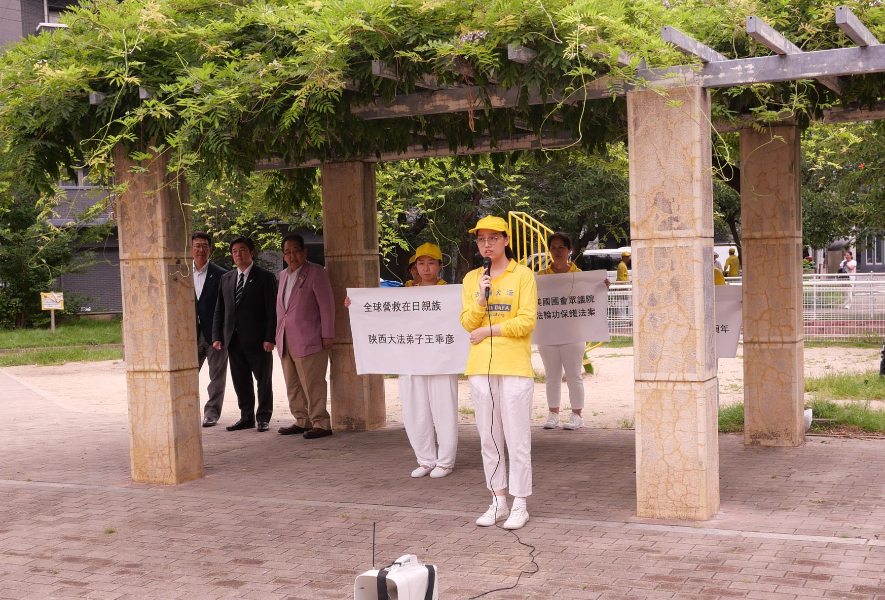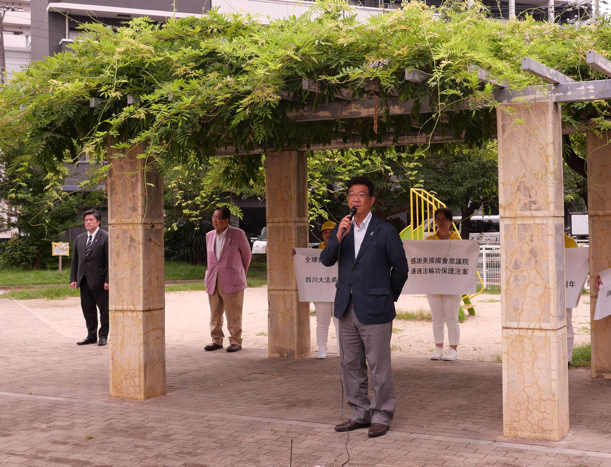 Tri zvaničnika govorila su pre marša u Osaki. Jasuhide Nakajama, bivši član Predstavničkog doma, koji je takođe bio viši zamenik ministra odbrane Japana. Kao dugogodišnji pristalica Falun Gonga, Nakaiama je rekao da KPK ozbiljno krši ljudska prava u Kini. On je istakao da, iako se sloboda misli poštuje u demokratskim zemljama, ona je ograničena u totalitarnim zemljama kao što je Kina, gde se dešavaju tragedije poput prisilnog uzimanja organa.